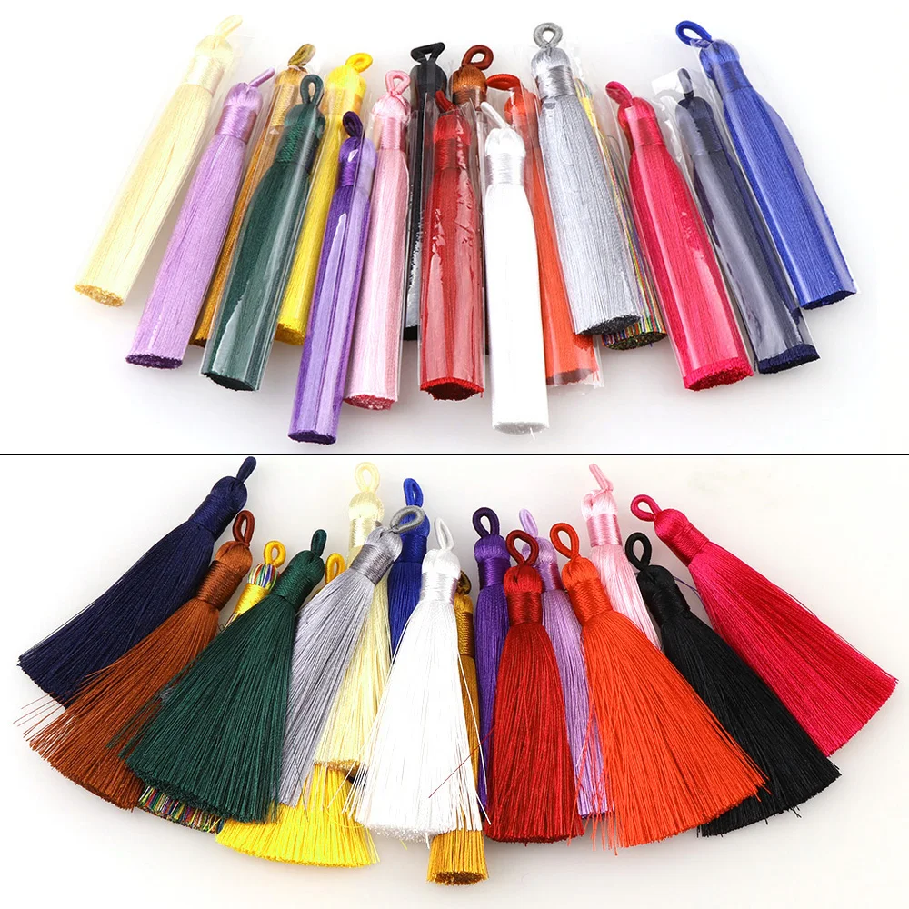 5 шт.компл. 80 мм длинные разноцветные кисточки из хлопка и шелка с отверстием для сережек Шарм Кулон Сатиновые кисточки женские самодельные Украшения