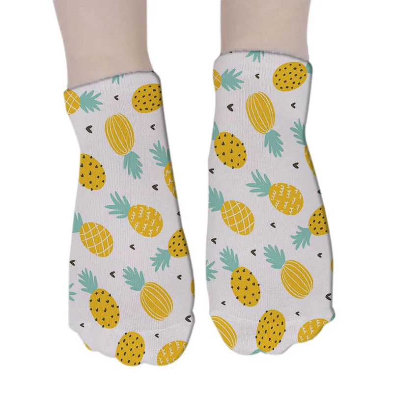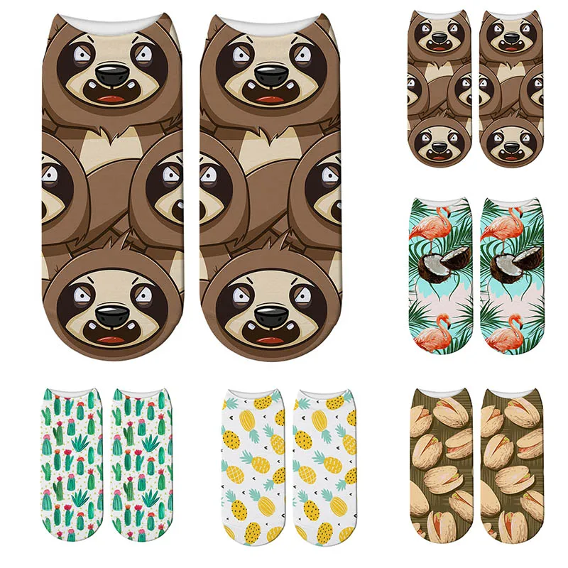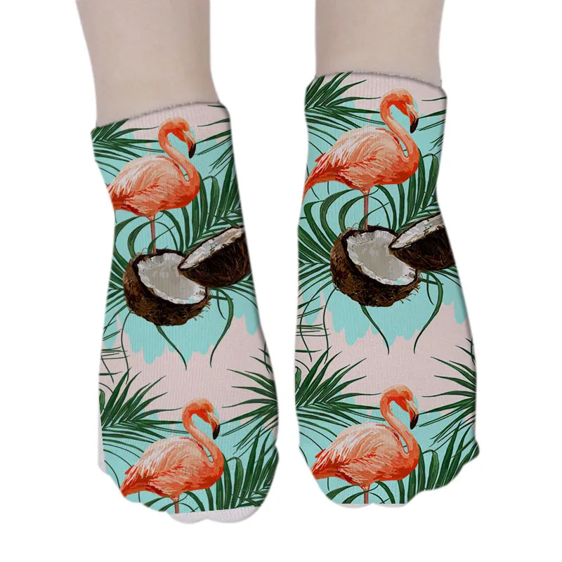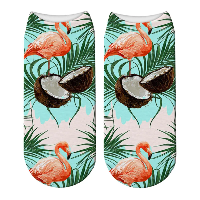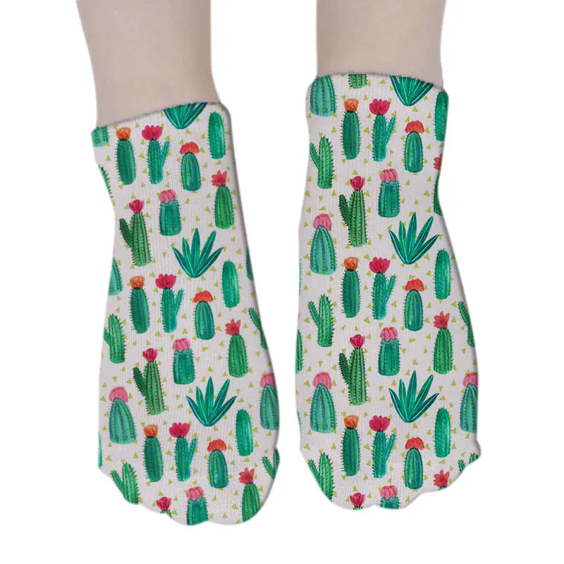 Женские короткие носки с 3D-принтом, летние короткие носки до щиколотки с рисунком кактуса, ананаса, Журавля, милые мини-Носки с рисунком растений, подарок для девушек