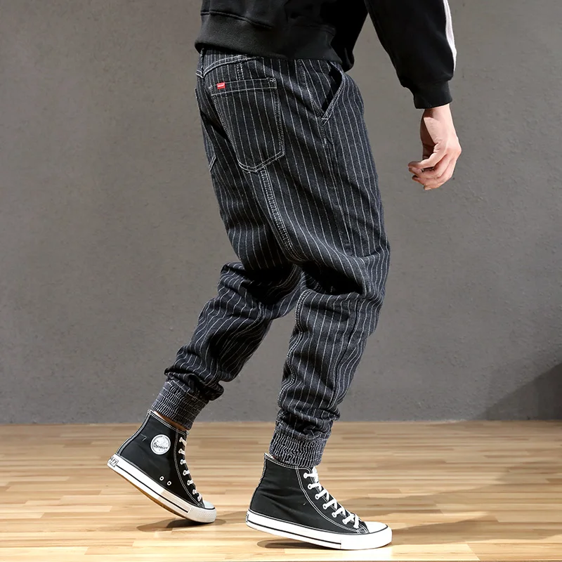 Модные мужские джинсы в японском стиле, дизайнерские свободные брюки-карго в полоску, мужские брюки с низким низом, уличная одежда, джинсы-джоггеры в стиле хип-хоп для мужчин