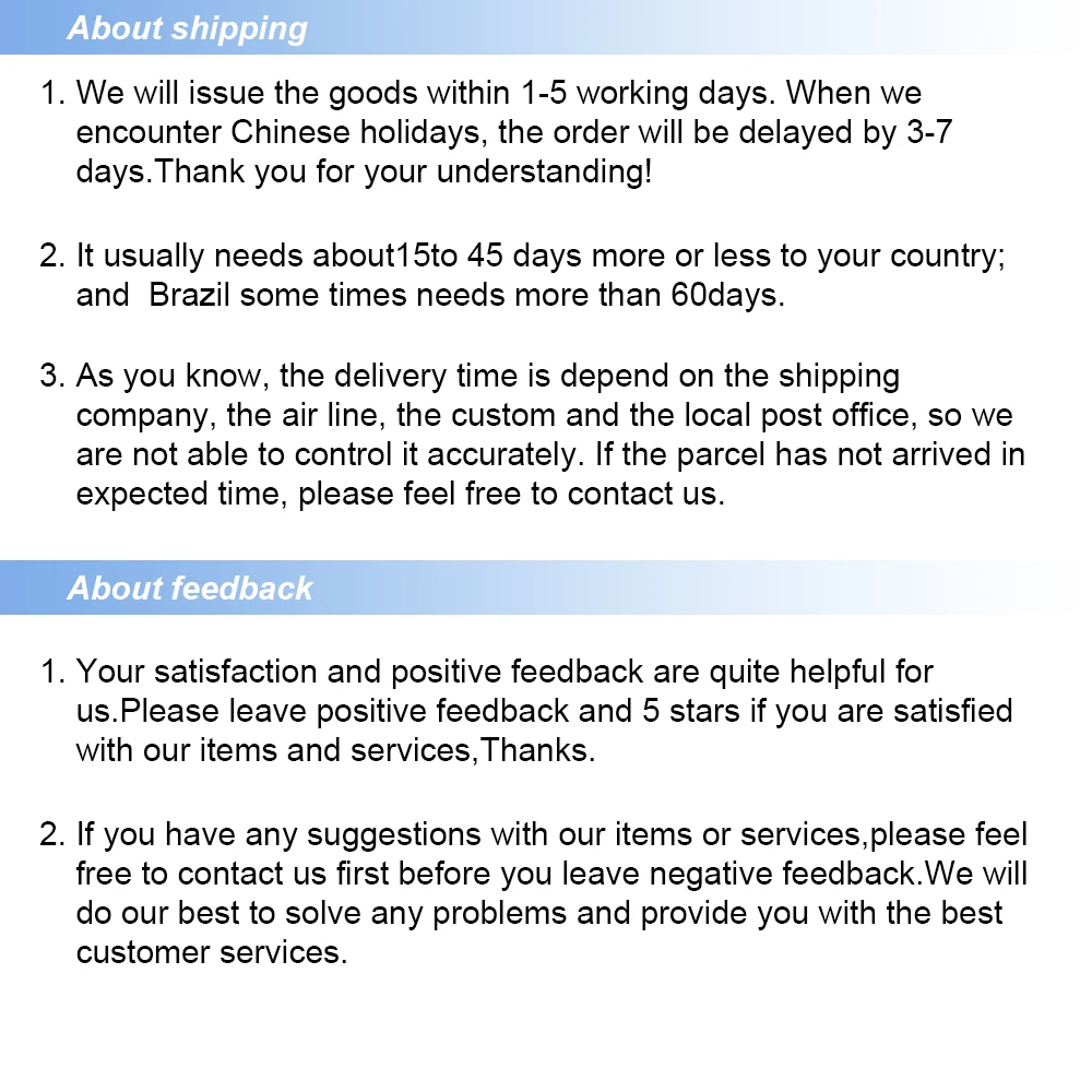 Я только что получил свой заказ в идеальном состоянии и был удивлен быстрой службой доставки, это заняло всего 10 дней и больше всего, продукты высокого качества, и поставщик был так любезен и предоставляет мне дополнительные лезвия. Я обязательно буду покупать здесь снова в следующий раз и также рекомендую вам всем этим поставщикам.