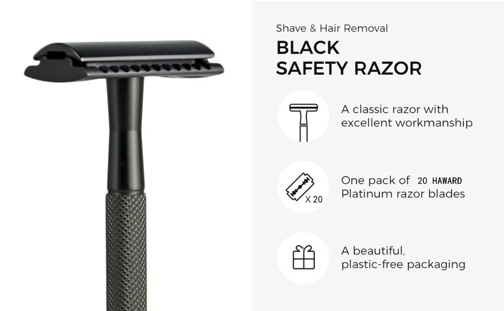 Бритва HAWARD для мужчин и женщин, с двойным лезвием, Классическая Ручная бритва металлическая бритва, с 20 лезвиями для многоразового использования, без пластика