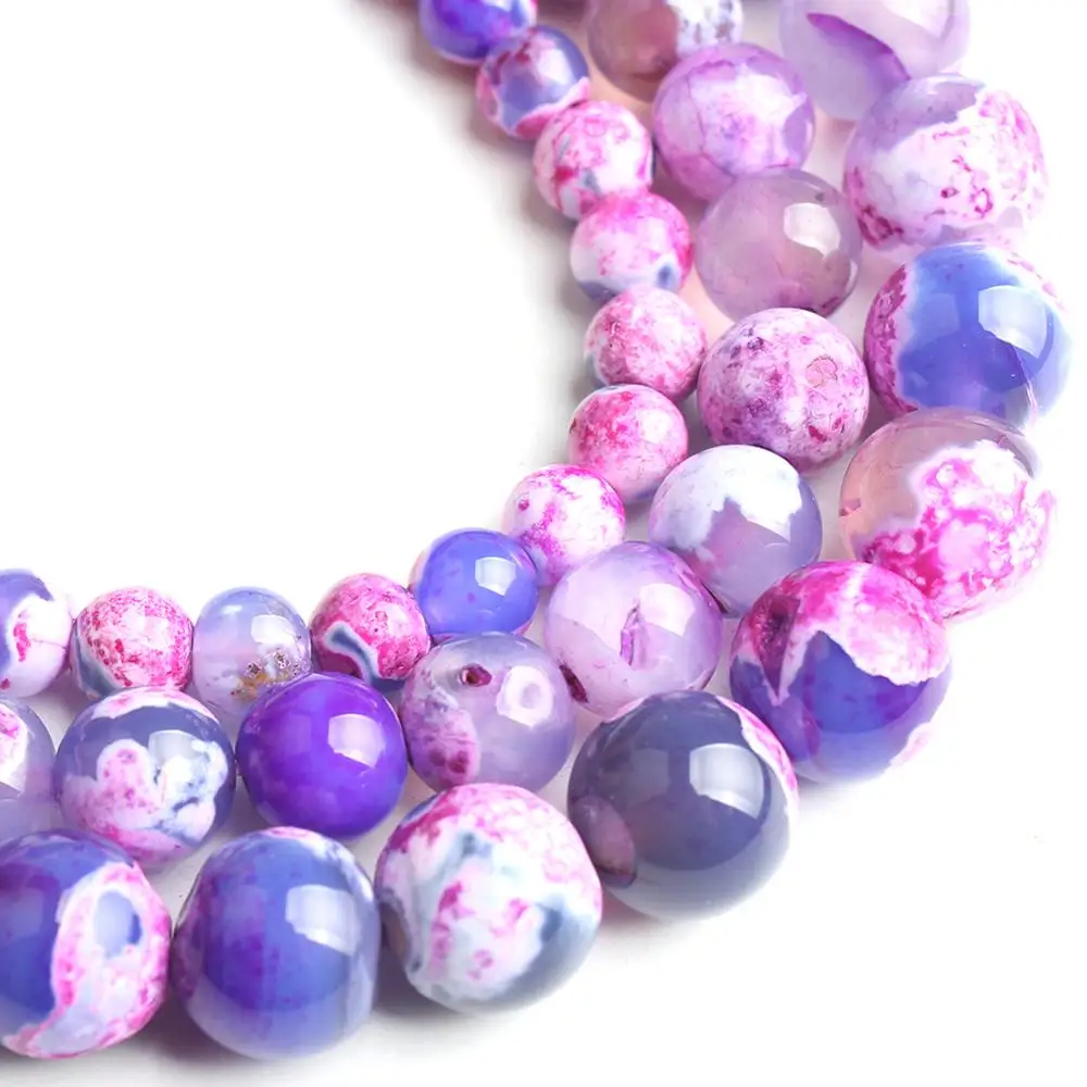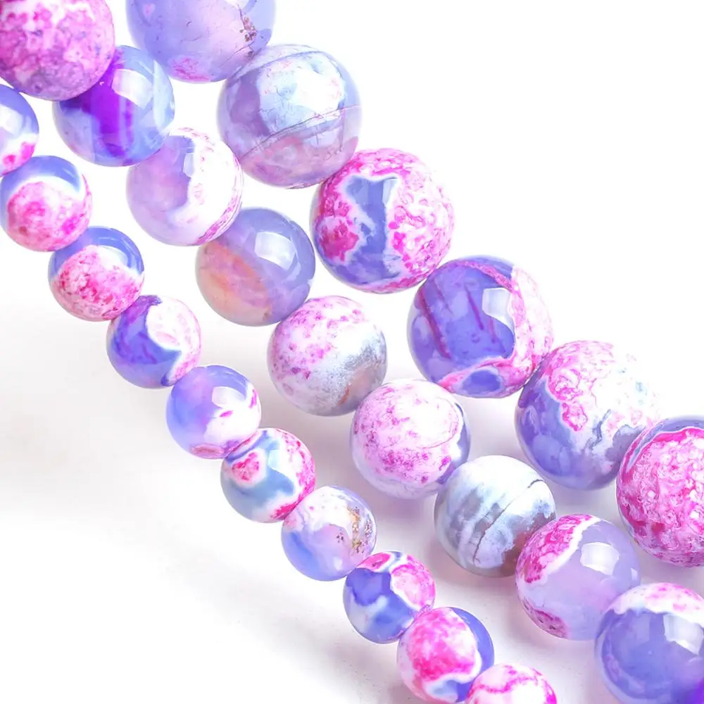 6810 мм Разноцветные фиолетовые бусины из огненного Агата Diy Браслеты круглые бусины россыпью для самостоятельного изготовления ювелирных изделий Аксессуары 15 дюймов