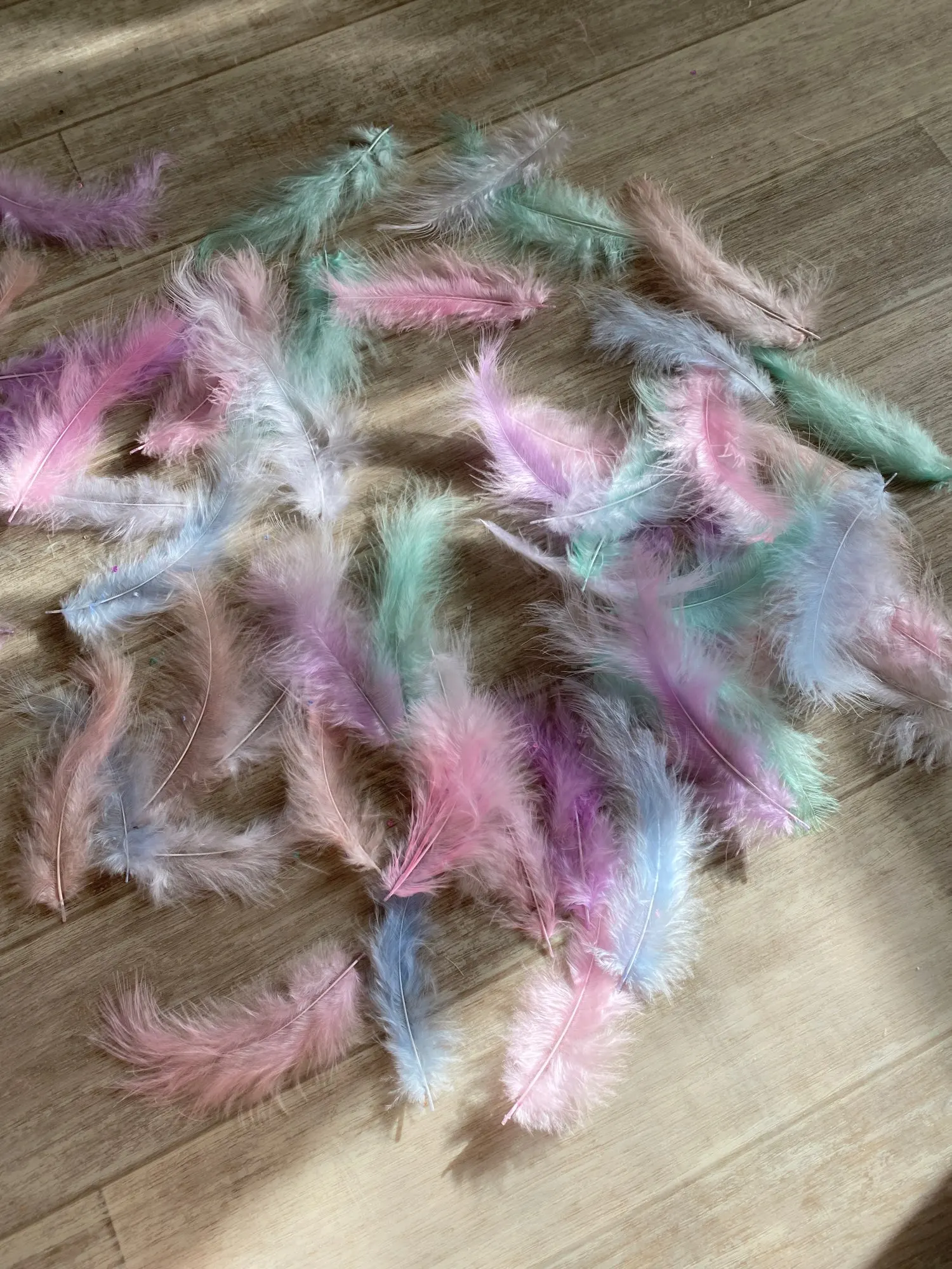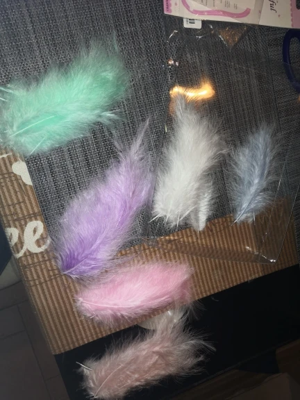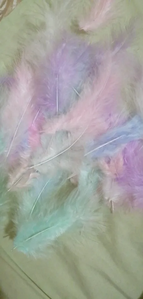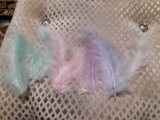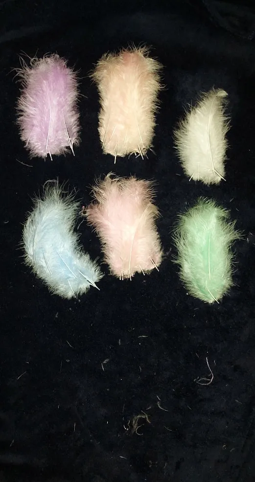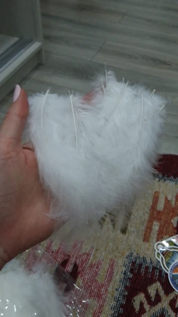 заказ совпадает с описанием за такую цену , есть и поменьше перышки совсем немного и немного линяют а так товар хороший , количество не пересчитывали