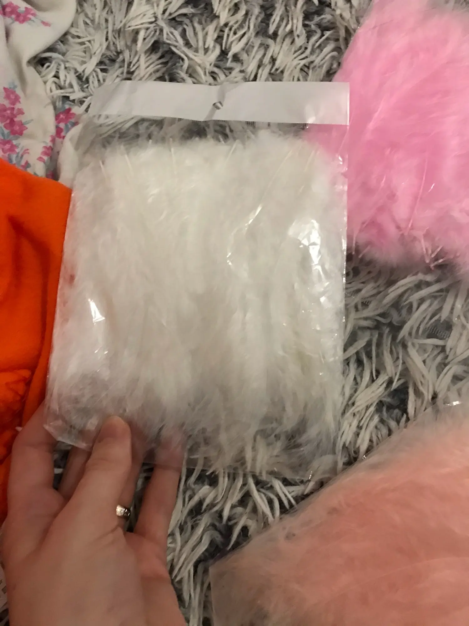 Заказ пришел через 18 дней после оформления. При распаковке из пакета высыпался пух, 3-4 шт. были слегка ощипаными, в общей массе не заметно. Почему-то предпологала, что 50 шт. будет больше по объему... Хотела разложить в шарики, а на деле этого хватит на 1 шарик. Цвета соотвествуют фото продавца, размер тоже как в описании. Вот количество не соответствует слегка: голубых - 9, белых - 6, светло-розовых - 12, розовых - 7, зеленых - 7, фиолетовых - 7. Итого: 48 вместо 50 шт.