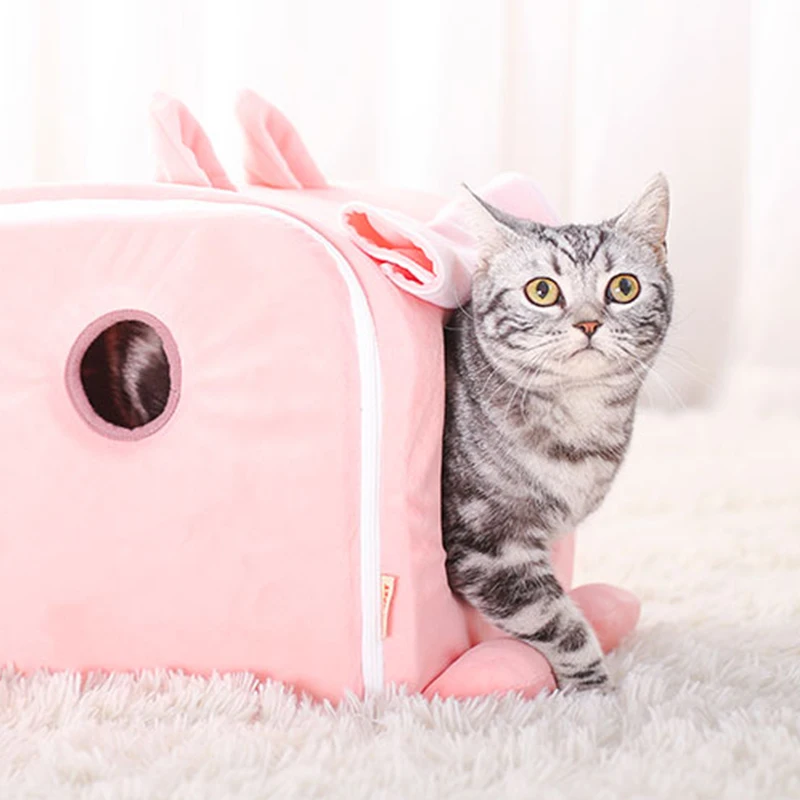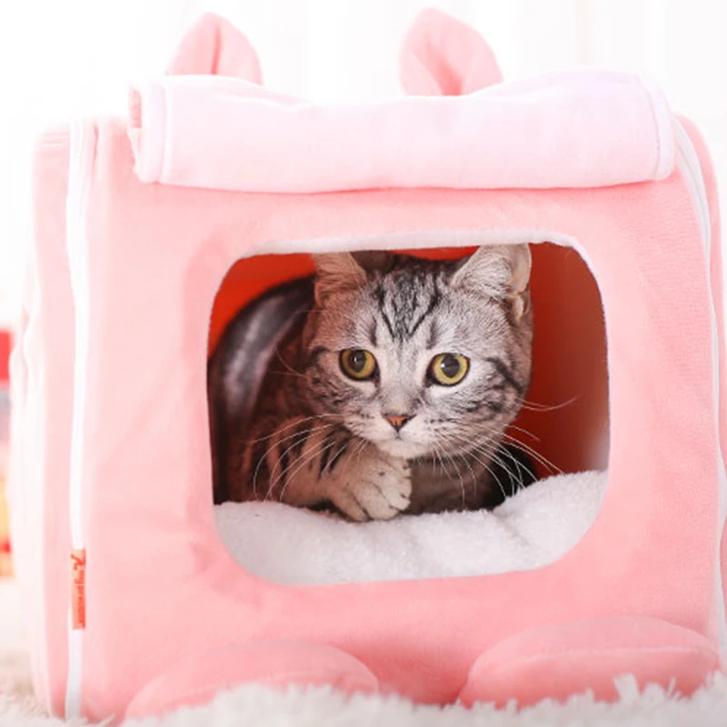 Розовая кровать для кошки Hoopet, милый домик для домашних животных, скамейка для собак, щенков, мягкий удобный домик для кошек