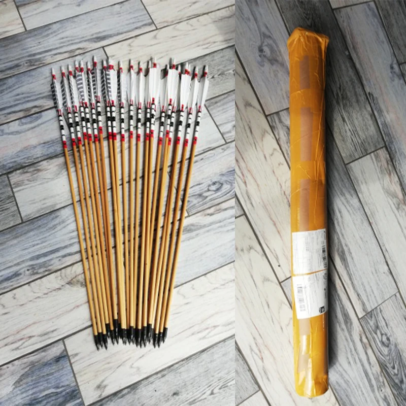 361224PCS 80cm Handmade Natural Wooden Arrows Bolts W Turkey Feather For 25-50lbs CompoundRecurve Bow Archery Shooting