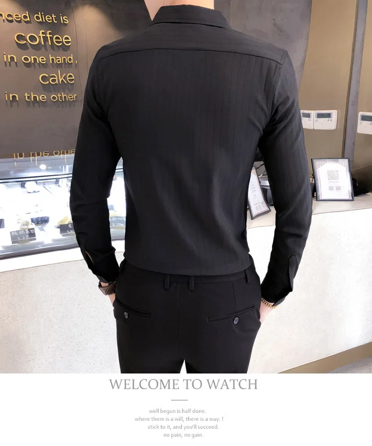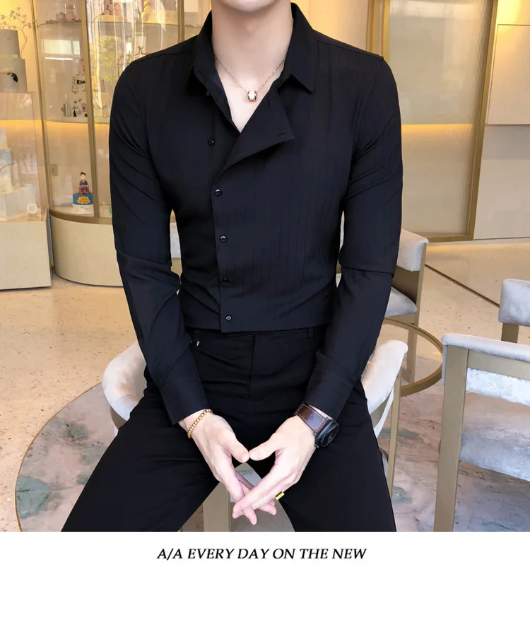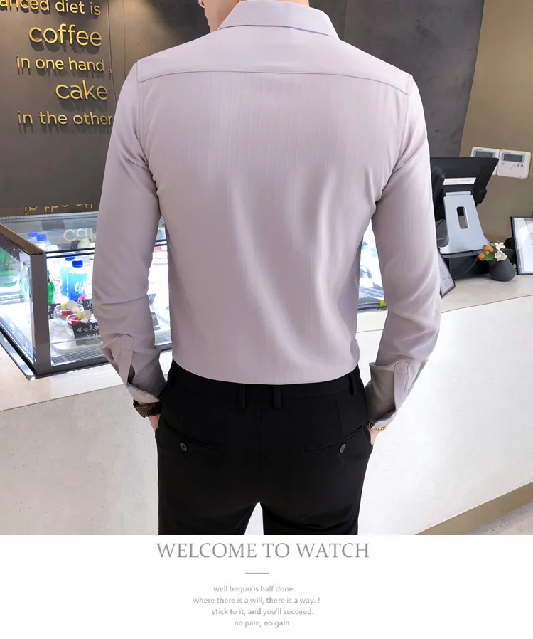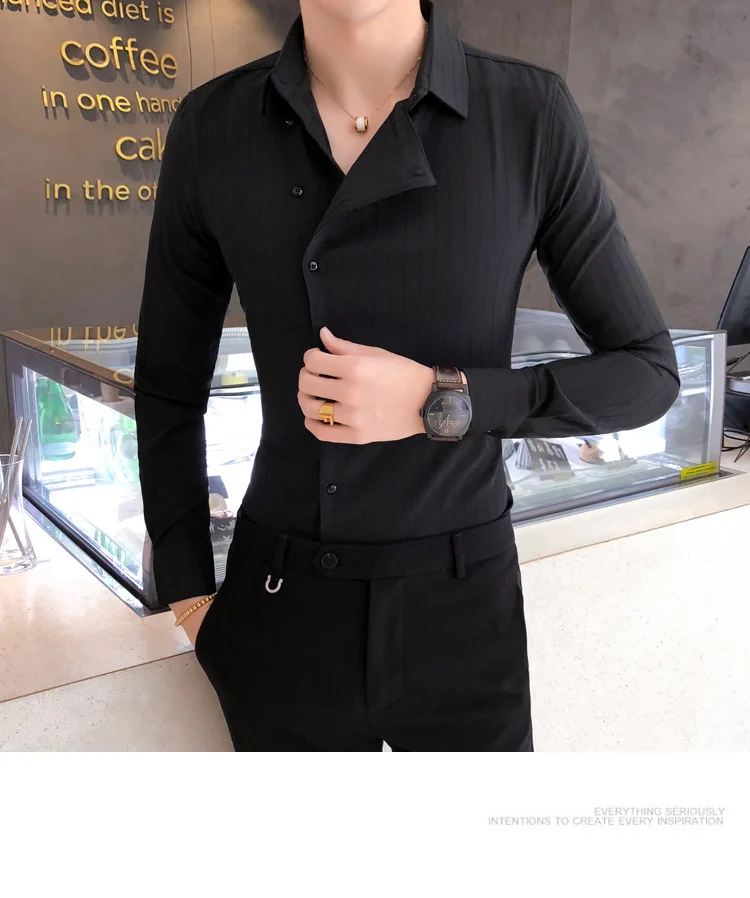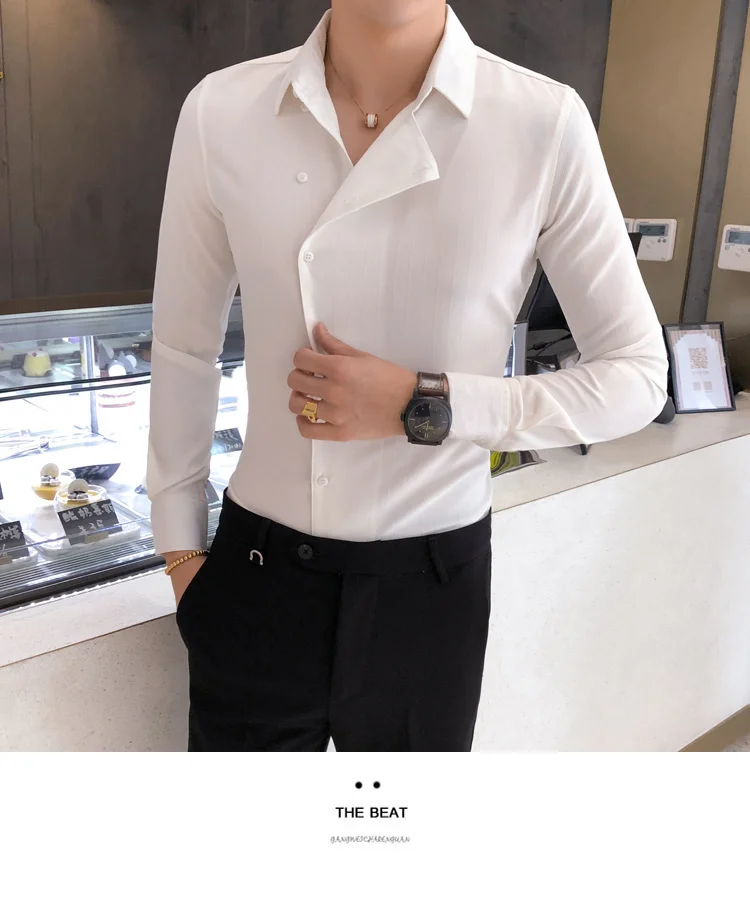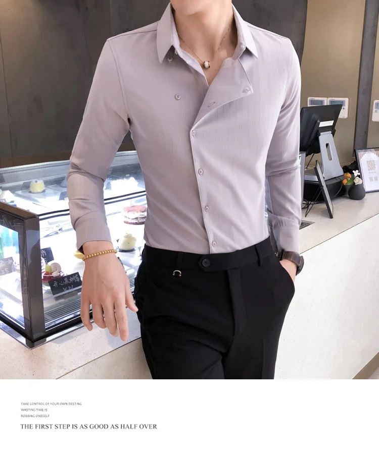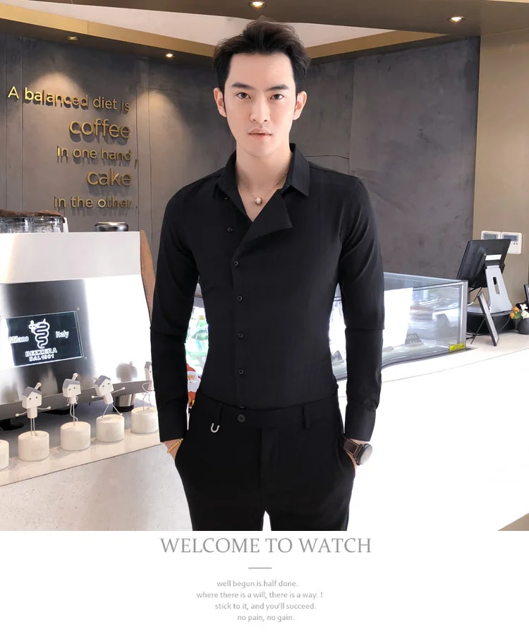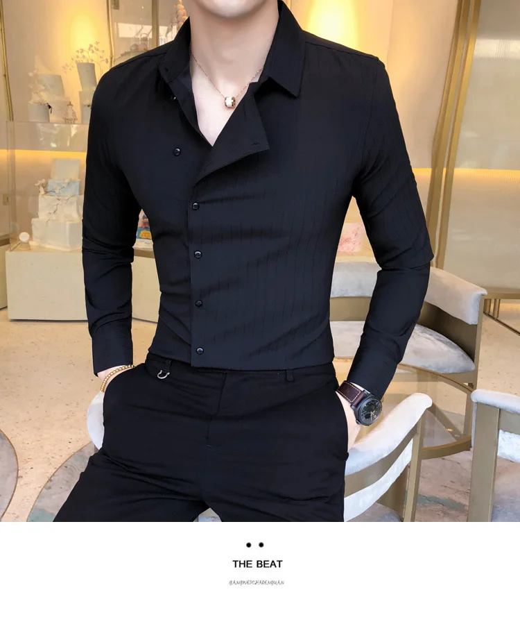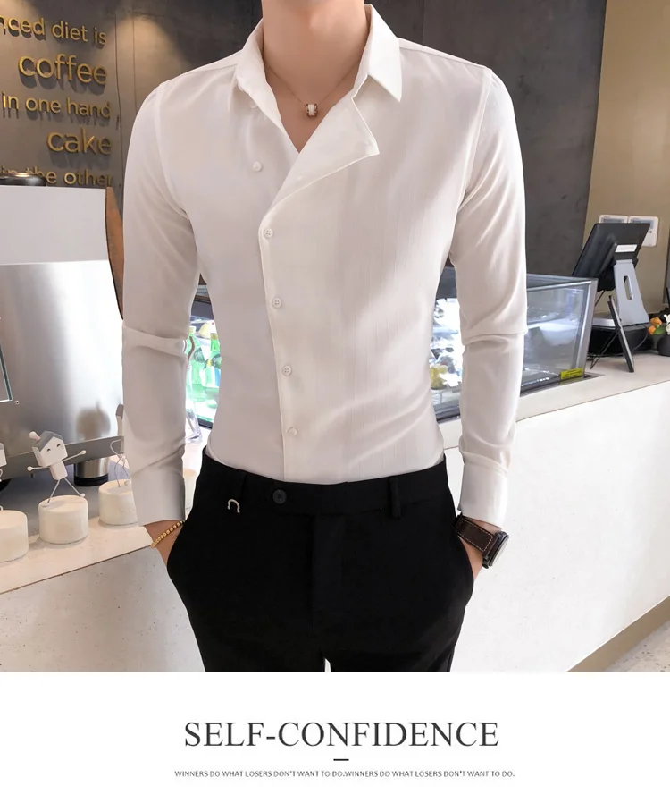 Мужская Однотонная рубашка, приталенная Однотонная рубашка с длинным рукавом, смокинг