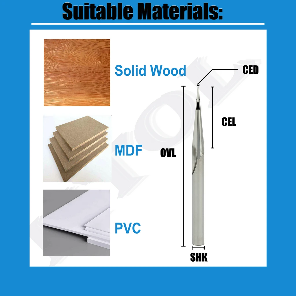 (1). Гравировальные Биты Тип: V инструменты для фрезерования древесины карбид вольфрама Концевая фреза
