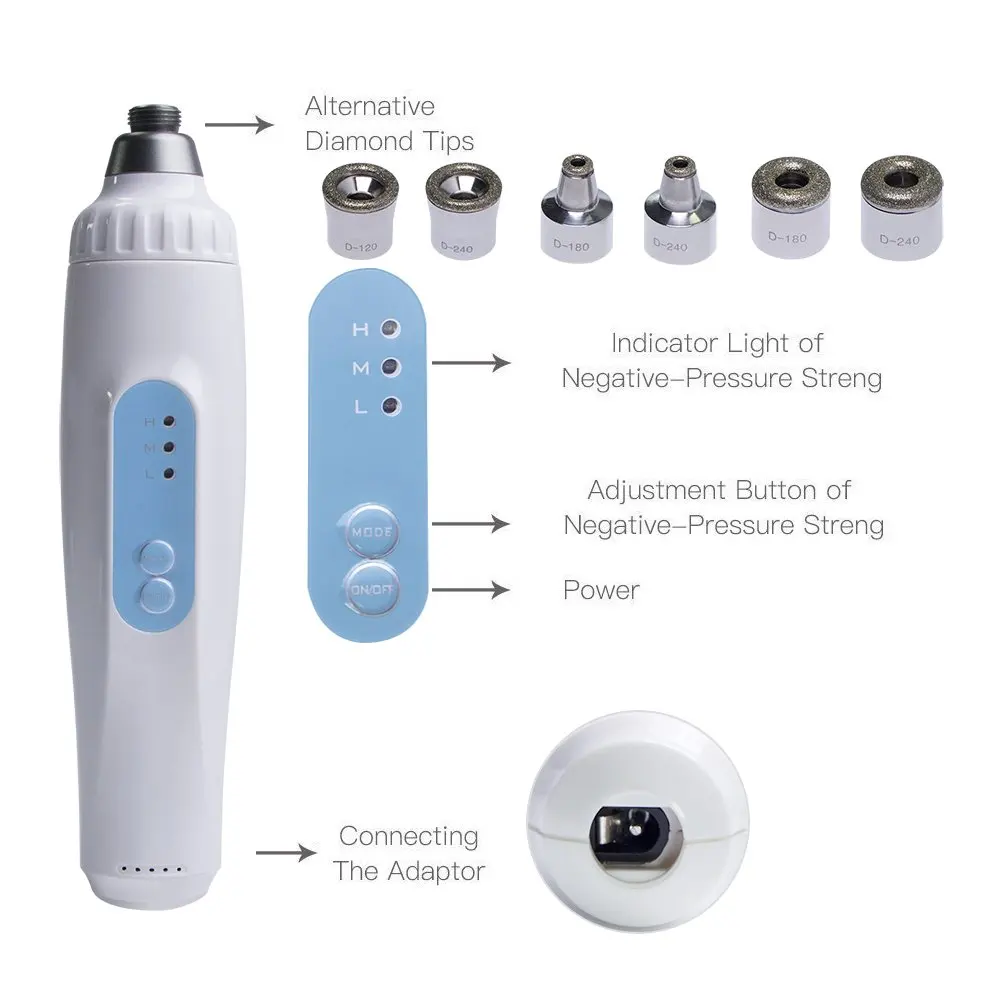 -С сильным давлением всасывания и качественными алмазными наконечниками, он работает так же, как профессиональная обработка микродермабразии без хлопот и стоимости. Он имеет светодиодный дисплей, встроенный таймер и 3 уровня давления всасывания (мягкий, средний и сильный).