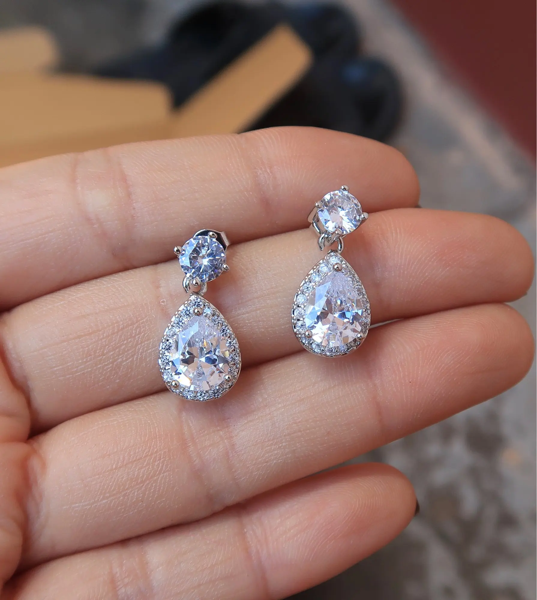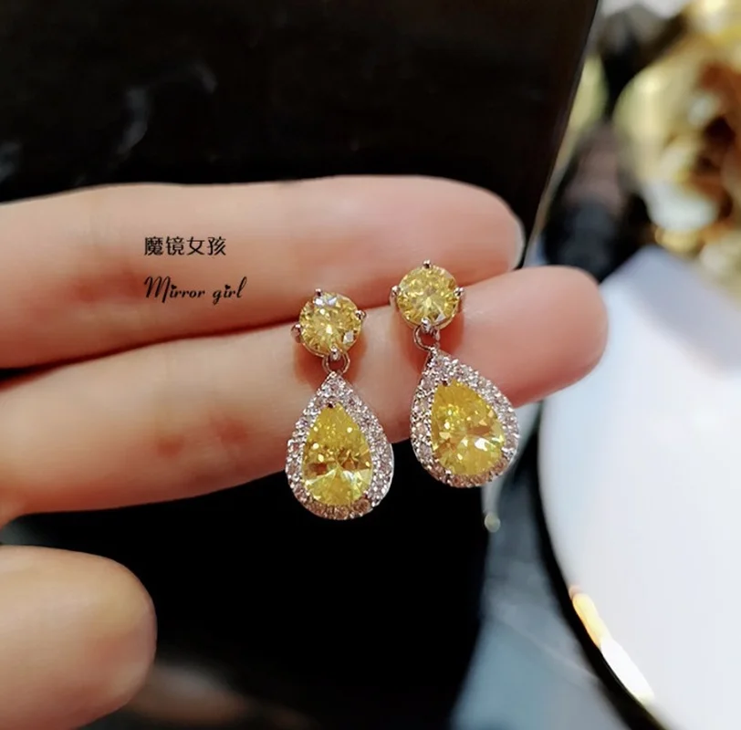 Женские серьги-гвоздики, с крупными цирконами, 5 цветов