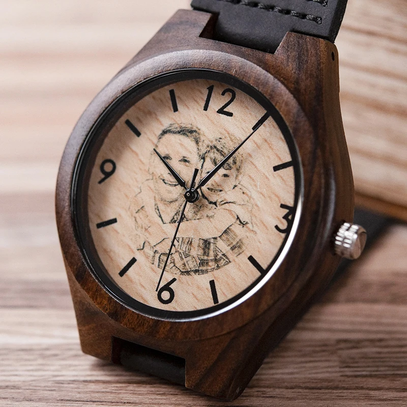 Персонализированные Деревянные Часы с гравировкой на фото, подарок для Него или для нее, подарок на день рождения, праздник, годовщину