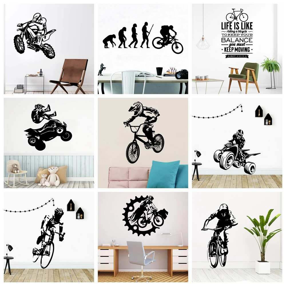 Спортивный велосипед для мальчиков, съемная настенная наклейка, самодельные обои для спальни, декор для мальчиков и девочек, настенные наклейки
