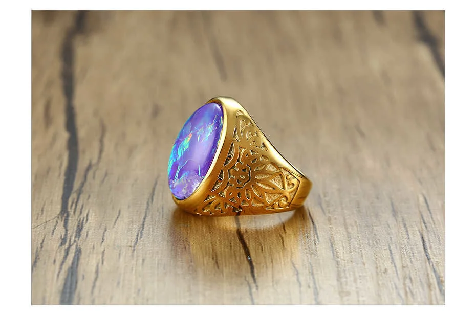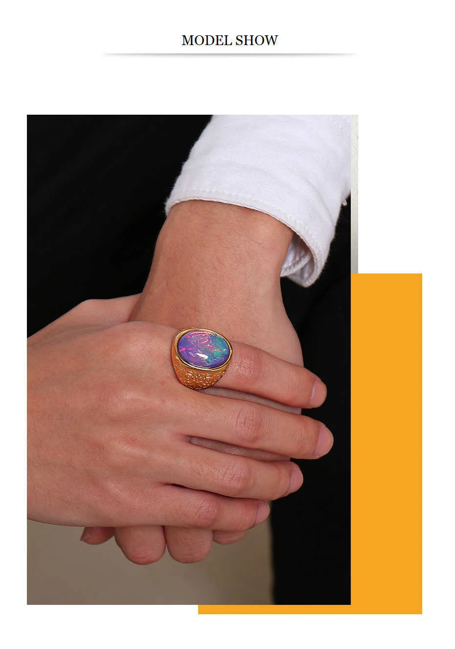 Zorcins Стильное мужское кольцо с опалом яркий красочный солитер ов...