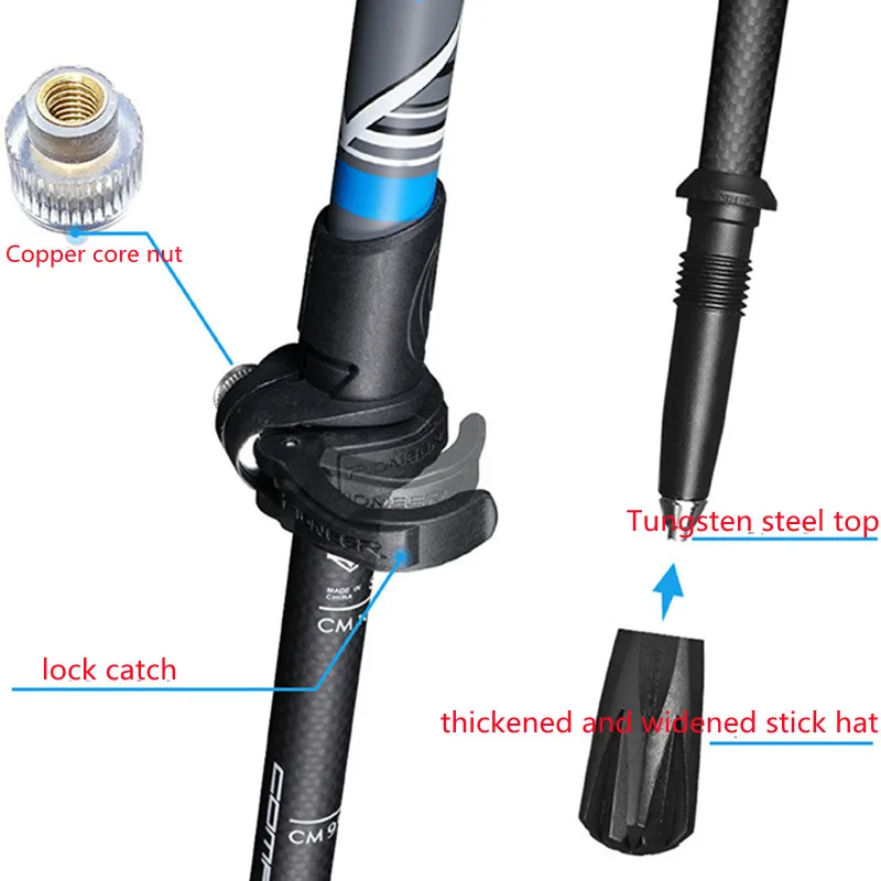 Пионер из углеродного волокна Компактный треккинг полюс быстрый флип-замок Сверхлегкий складной дорожный туризм для пожилых альпинистская палка для ходьбы