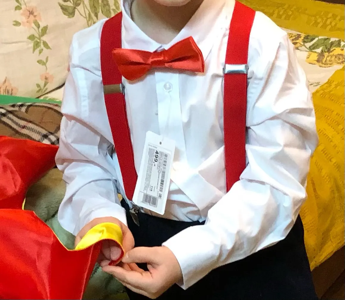 товар не пришёл. продавец общительный. три раза мне отправлял, но не разу так товар не пришёл. деньги вернул. где-то видно по пути находился нечестный человек. который забирал мою посылку. очень жаль что не дошли подтяжки с бантиком.