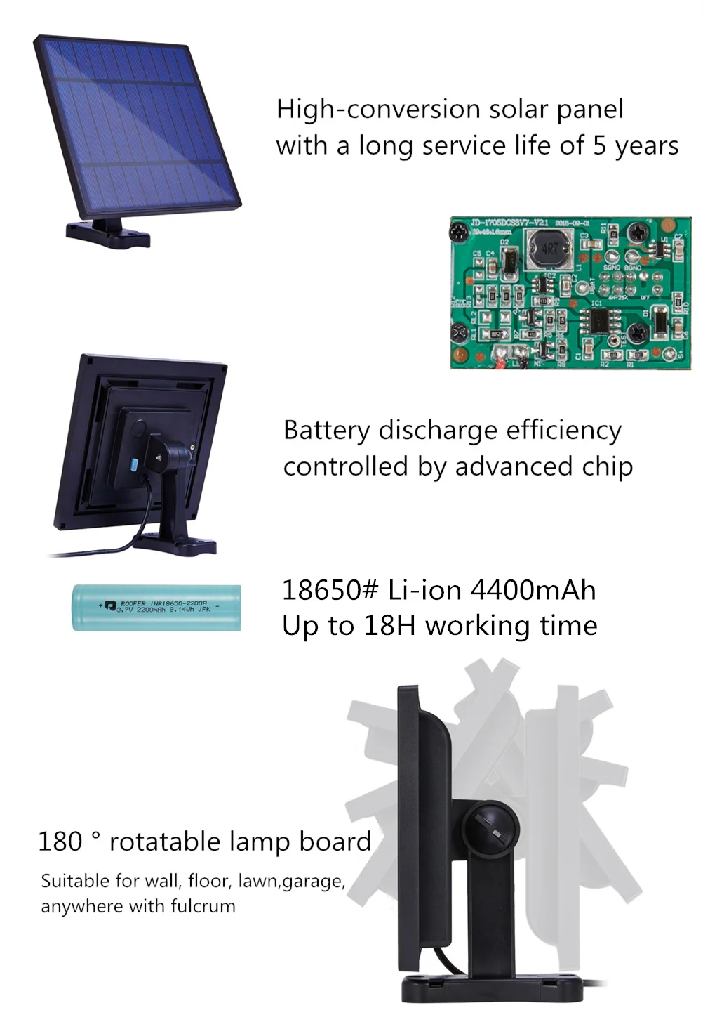 Параметр:Батарея: 3,7 V 4400mAh перезаряжаемый литий-ионный аккумулятор БатареяПанели солнечные: 5,5 V, 1,5 WЯркость: около 600 лмДлина: 5 м/16 футовГарантия: 1 годВремя зарядки: 7 часов Время работы: 10-18 часовРежим работы: ночное время, выходной деньПрименение:Наружное садовое освещение, охранное освещение, установка на стену, газон, дорожку, подземный...Характеристика:【 Литиевые батареи емкостью 4400 мА · ч для длительной работы время работы автоматически. Солнечные батареи с помощью солнечной панели. Светильник встроен в солнечную панель и реагирует на то, что при наступлении темноты Он сразу же включит светильник наводнения. Жесткий и прочный панели солнечных батарей рассчитан на 5,5 V / 640 мАч, достаточно для зарядки аккумуляторов в 6,5 часов в прямых солнечных лучей светильник. 2 шт 3,7 V / 2200mah 18650 Li-Ion батареи серии, общая емкость 4400mAh. Сохраненная энергия может поддерживать более 16 часов времени работы.【30 светодиодный Бисер для стабильного и яркого освещения 】 30 Мощный светодиодный s и регулируемый угол 180 градусов, легко настраивается на различные положения, которые могут дать превосходное освещение и превратить темное пространство в яркое освещенное пространство от сумерек до рассвета. Яркость составляет около 40 Ватт светильник лампы.【С 5 м/16 футов шнуром, простая установка 】длинный кабель, чтобы идеально найти место для панели, чтобы получить достаточно солнечного света и разместить прожектор в желаемом месте. Он может быть разделен, подходит для внутреннего и наружного использования. Простая установка в течение 15 минут. Заряжен даже в пасмурный и дождливый день, это бесплатное солнечное электричество в течение всего года. 180 градусов регулируемая солнечная панель, вы можете настроить угол для лучшего дневного света. Гибкий угол может удовлетворить различные потребности.【Водонепроницаемый IP 65 и открытый и закрытый в наличии 】изготовлен из ударопрочного АБС-пластика и имеет огромный технологический прорыв в водонепроницаемости, солнечные огни на открытом воздухе имеют уникальный водонепроницаемый дизайн IP65 и могут выдерживать все виды страшной погоды. Идеально подходит для установки на потолочном крыльце, каюте, крыше, дереве, дверном проеме, саду, баре, сарае, беседке, входной двери дома или в гараже, в любом месте на открытом воздухе или в помещении.【 Что в коробке и послепродажном обслуживании 】солнечная лампа с солнечной панелью, 4 пары винтов, 2 опорных кронштейна, 4 ремешка, 1 руководство. Пожалуйста, не стесняйтесь обращаться к нам, если у вас есть какие-либо вопросы. Мы ориентируемся на бренды и услуги.