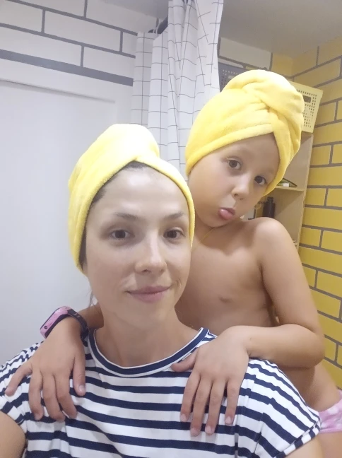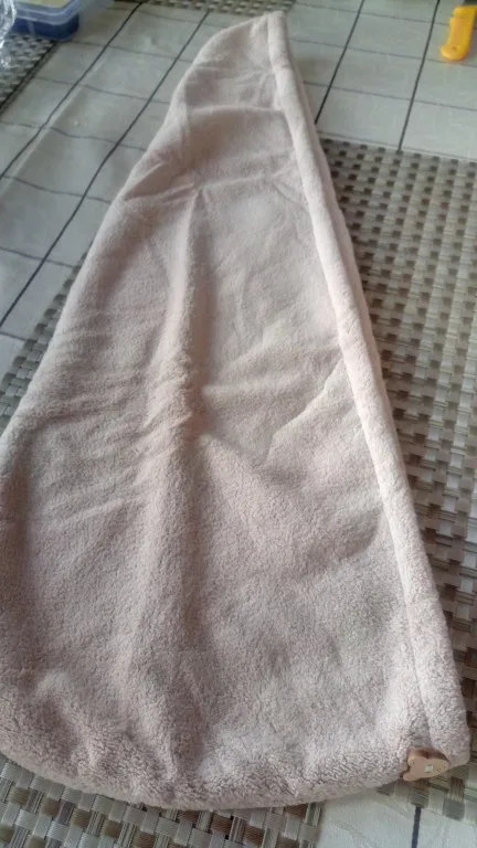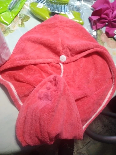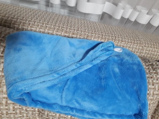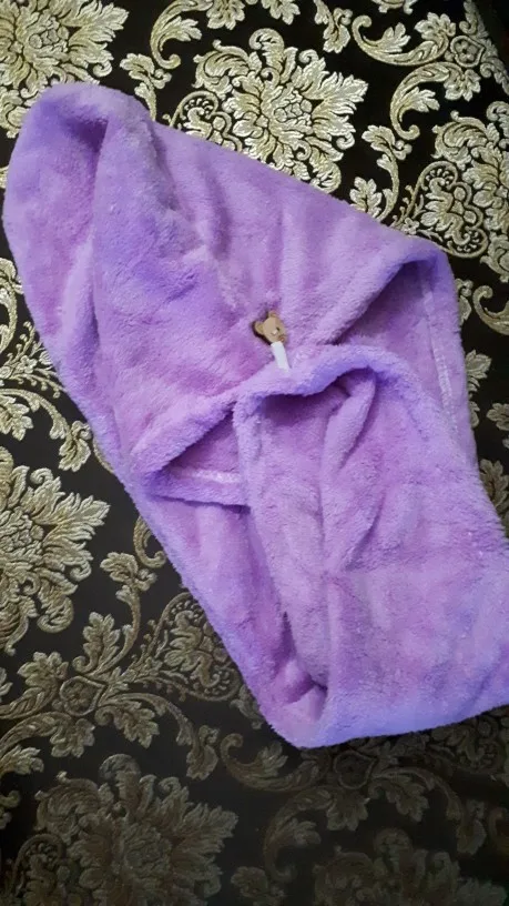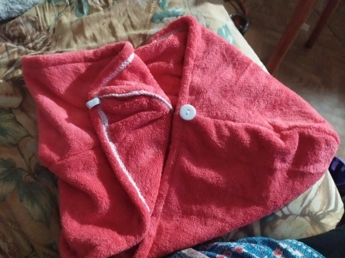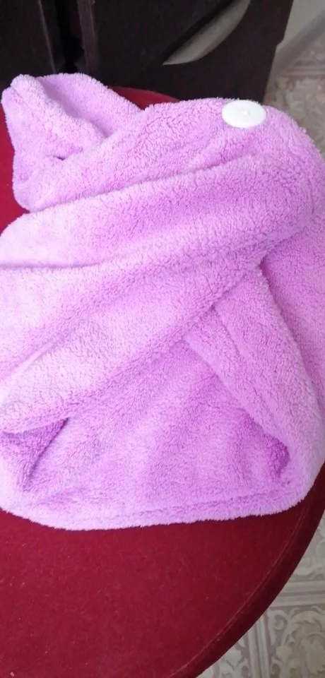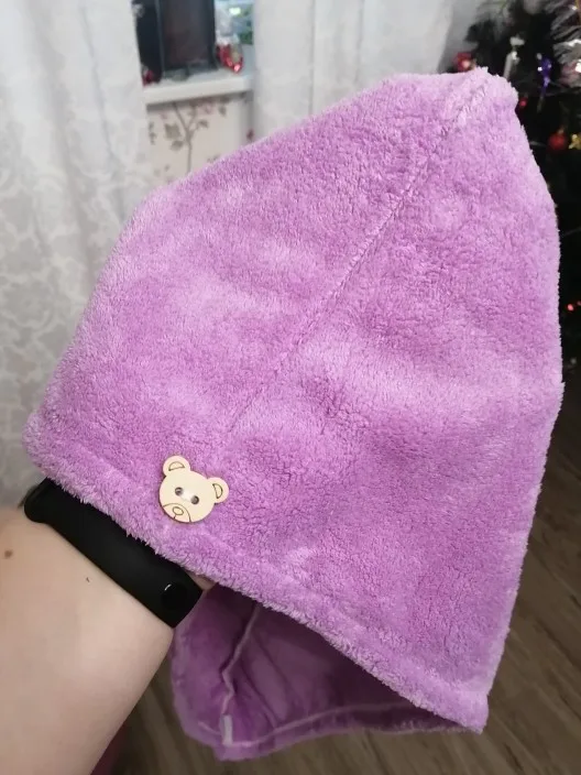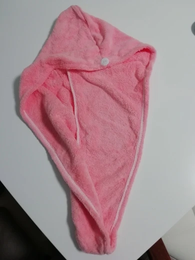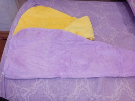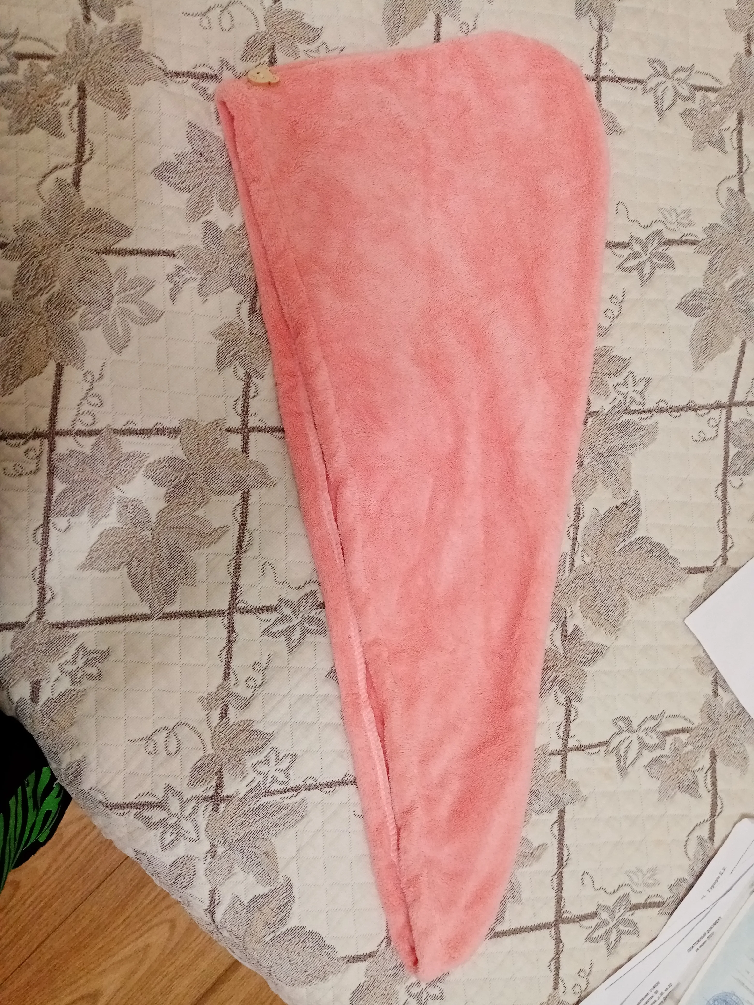 Полотенце-шапка нормальное, но дл9я сухих волос, влагу с волос не впитывает, видимо материал совсем не тот, что надо. Задумка хорошая, одевается хорошо. Цена завышена, для таких вещей цена не более 50 руб.