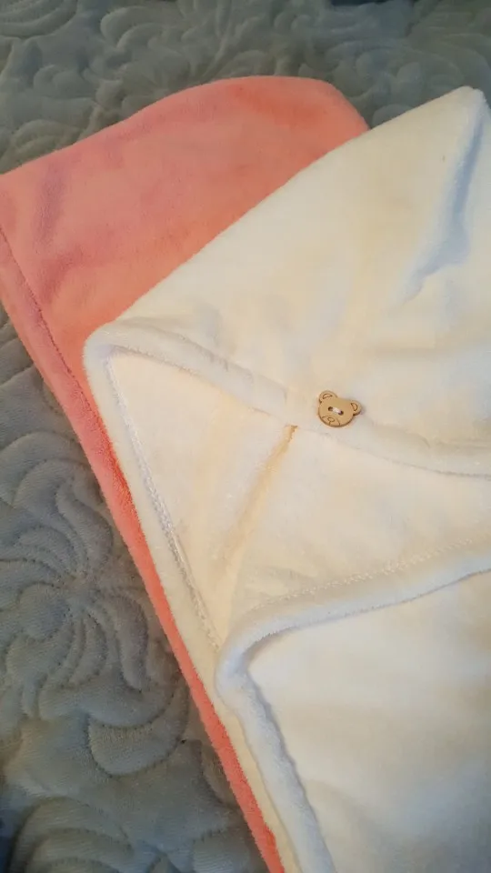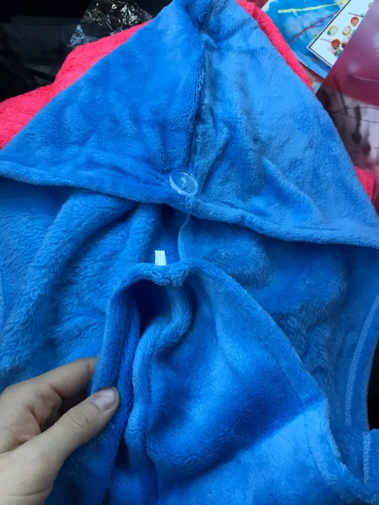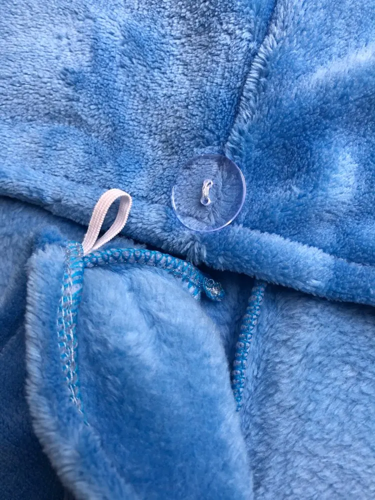 В спб пришло довольно быстро. На розовой классная деревянная пуговка в виде мишки) размер, глубина капюшона отличная. По составу ткани розовая отличается от синей. Ткань Синей больше похожа на ткань для мягких игрушек, розовая-более «хозяйственная» ткань что ли. Позже посмотрим как на деле будет