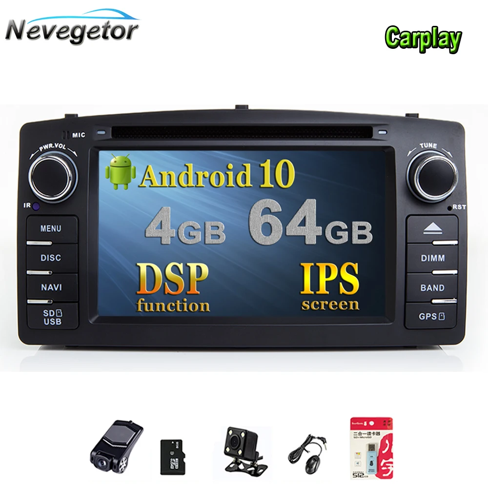 Автомобильный DVD-плеер Corolla E120 BYD F3 Ceed, GPS, стерео аудио навигация, Android 10, двойной DIN Bluetooth