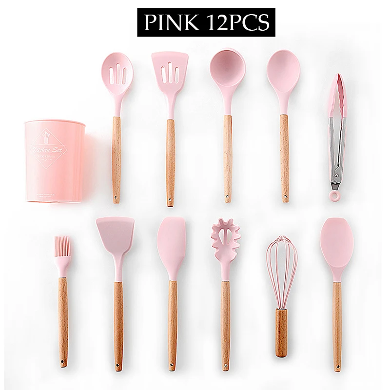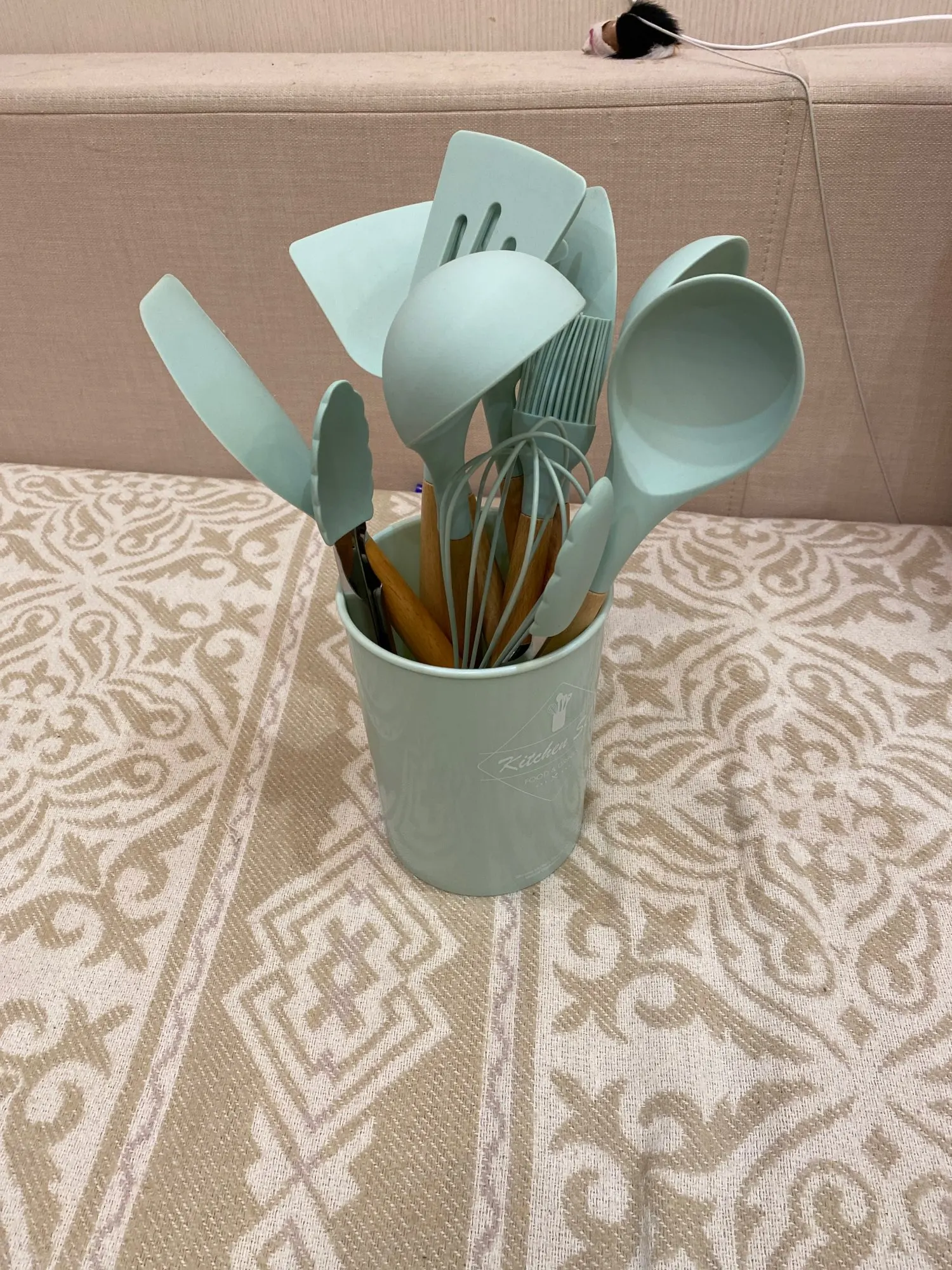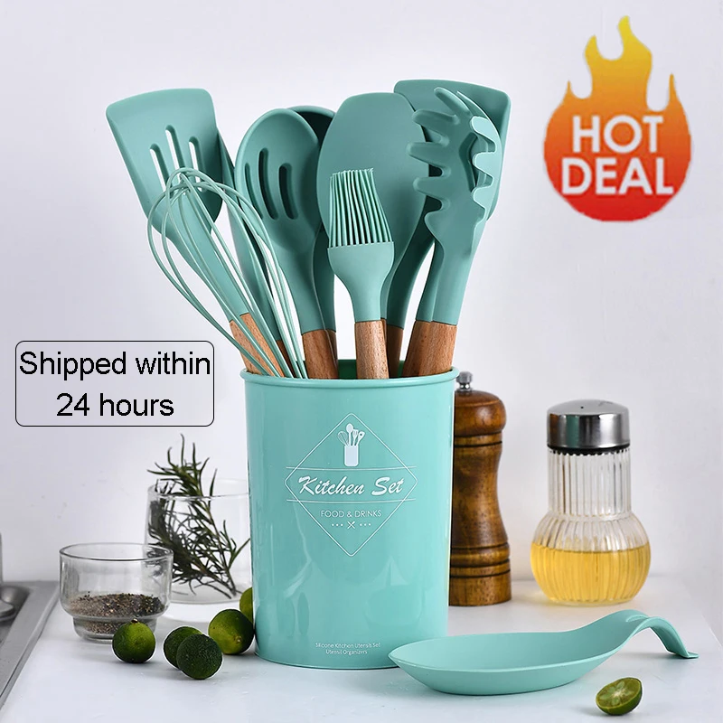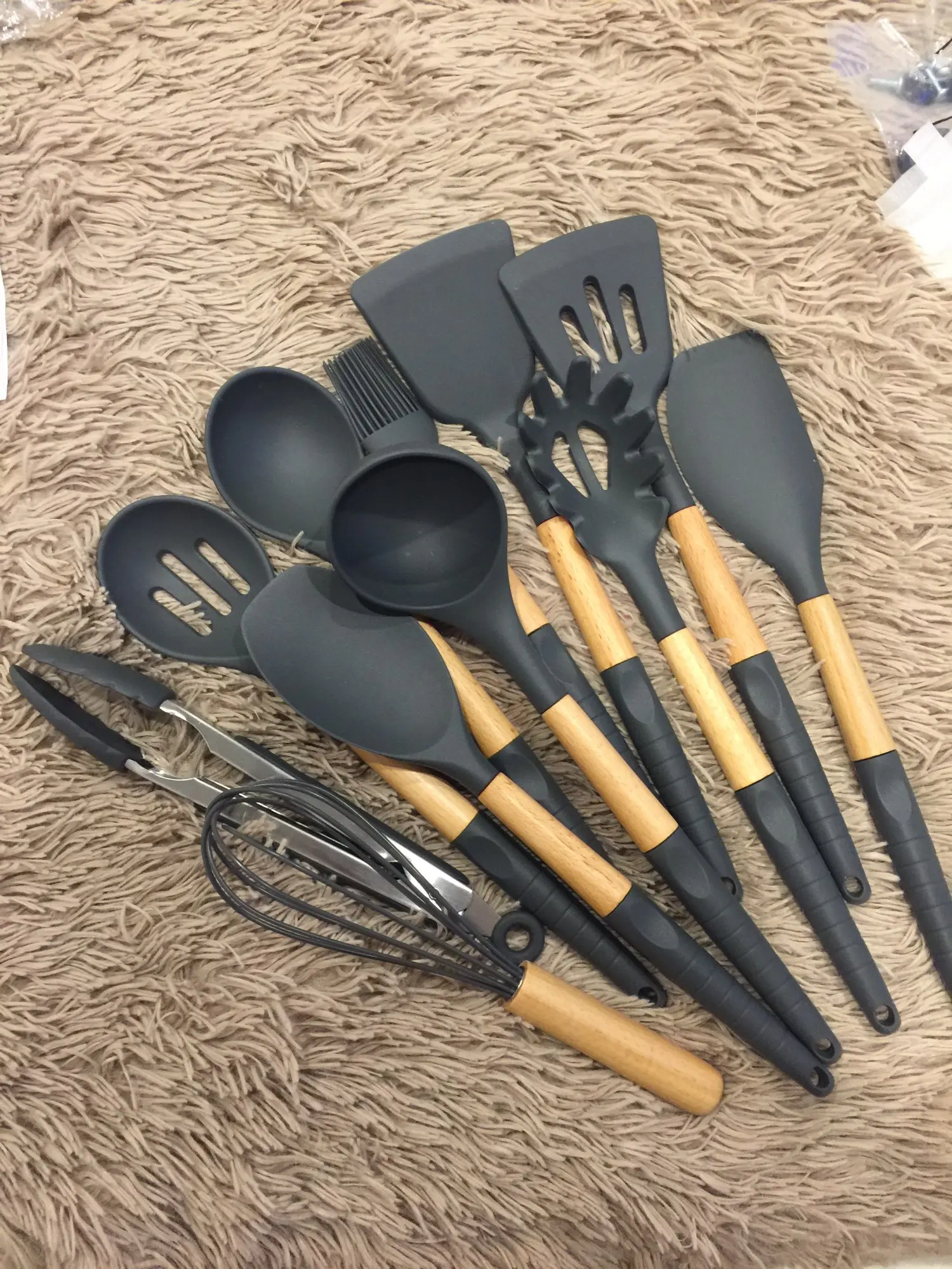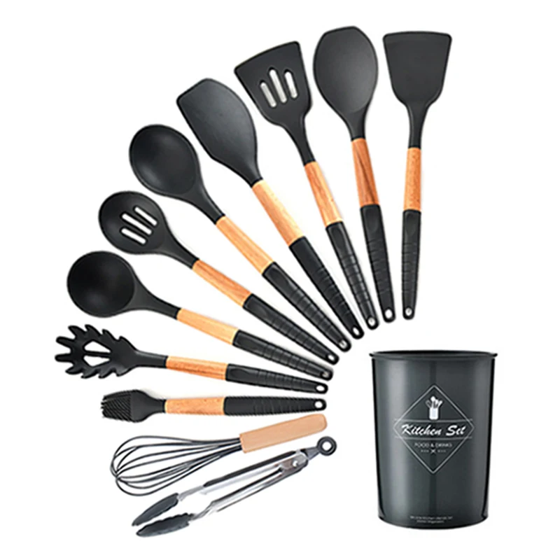 Набор силиконовых кухонных принадлежностей премиум-класса, комплект из 9-13 предметов, с футляром для хранения, щипцы, лопатка, ложка для супа