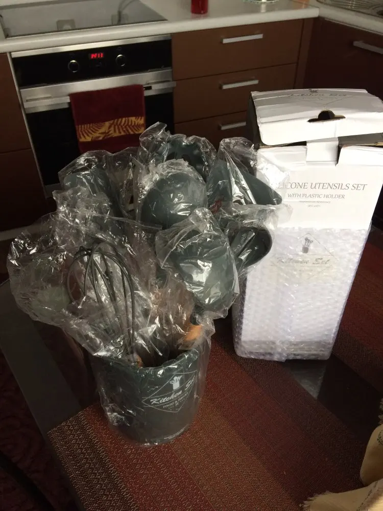 Крутой набор, брала со стаканчиком и не зря!!!!!! Ручки длинные и удобные. Силикон качественный. Пришло за три недели