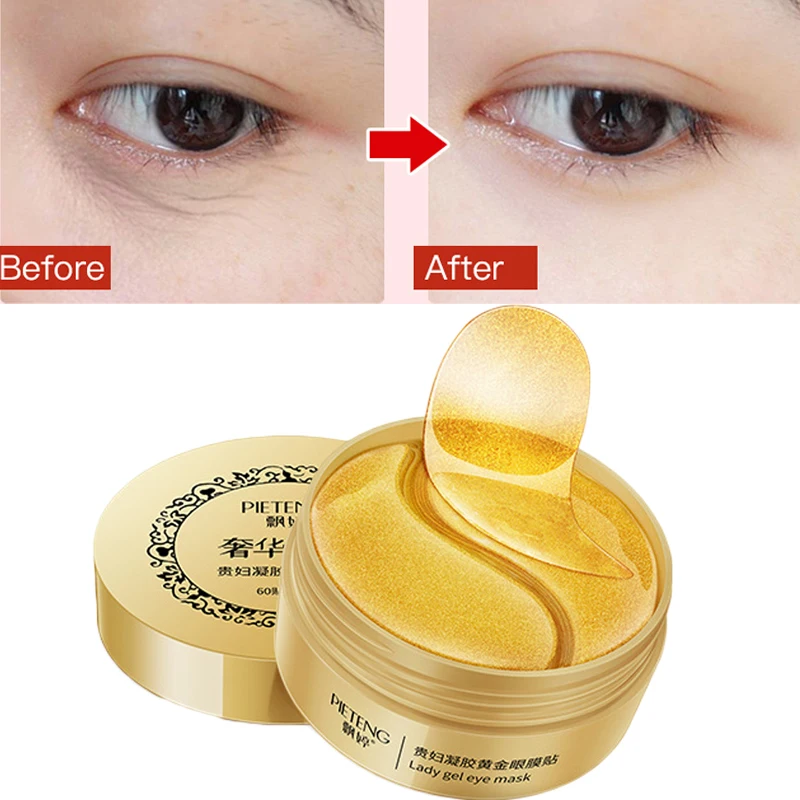 60 шт., Золотая коллагеновая маска для глаз, гель, увлажняющие патчи для глаз, Уход за глазами, маска для сна, средство для удаления темных грязей, против возрастных мешков, морщин для глаз