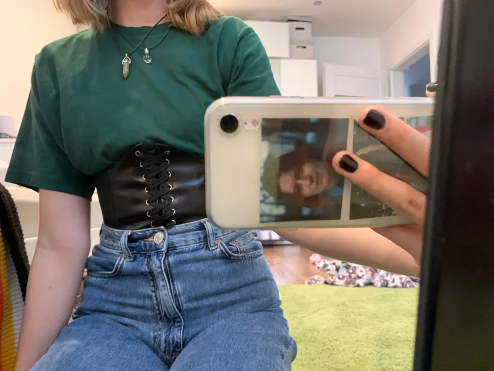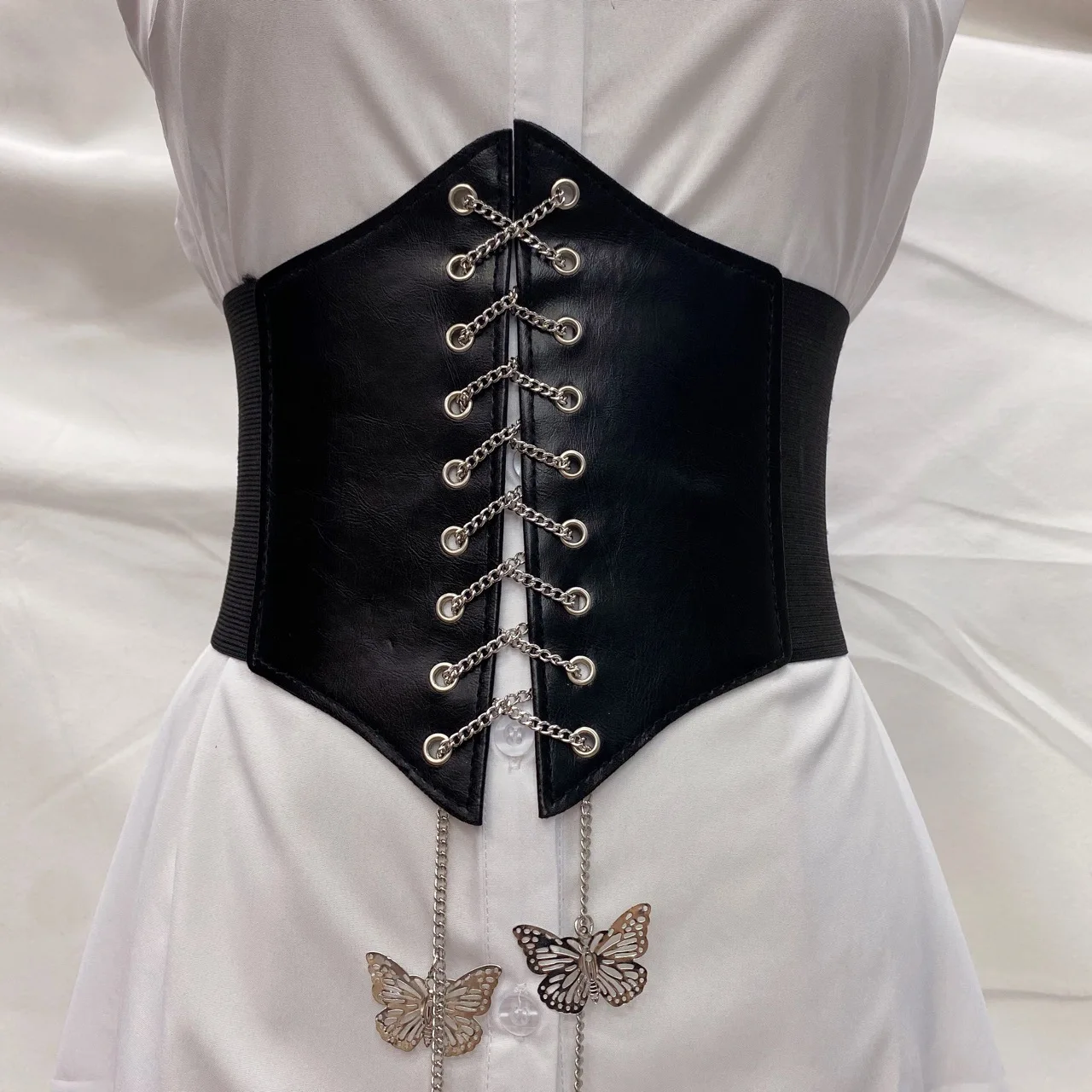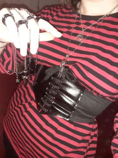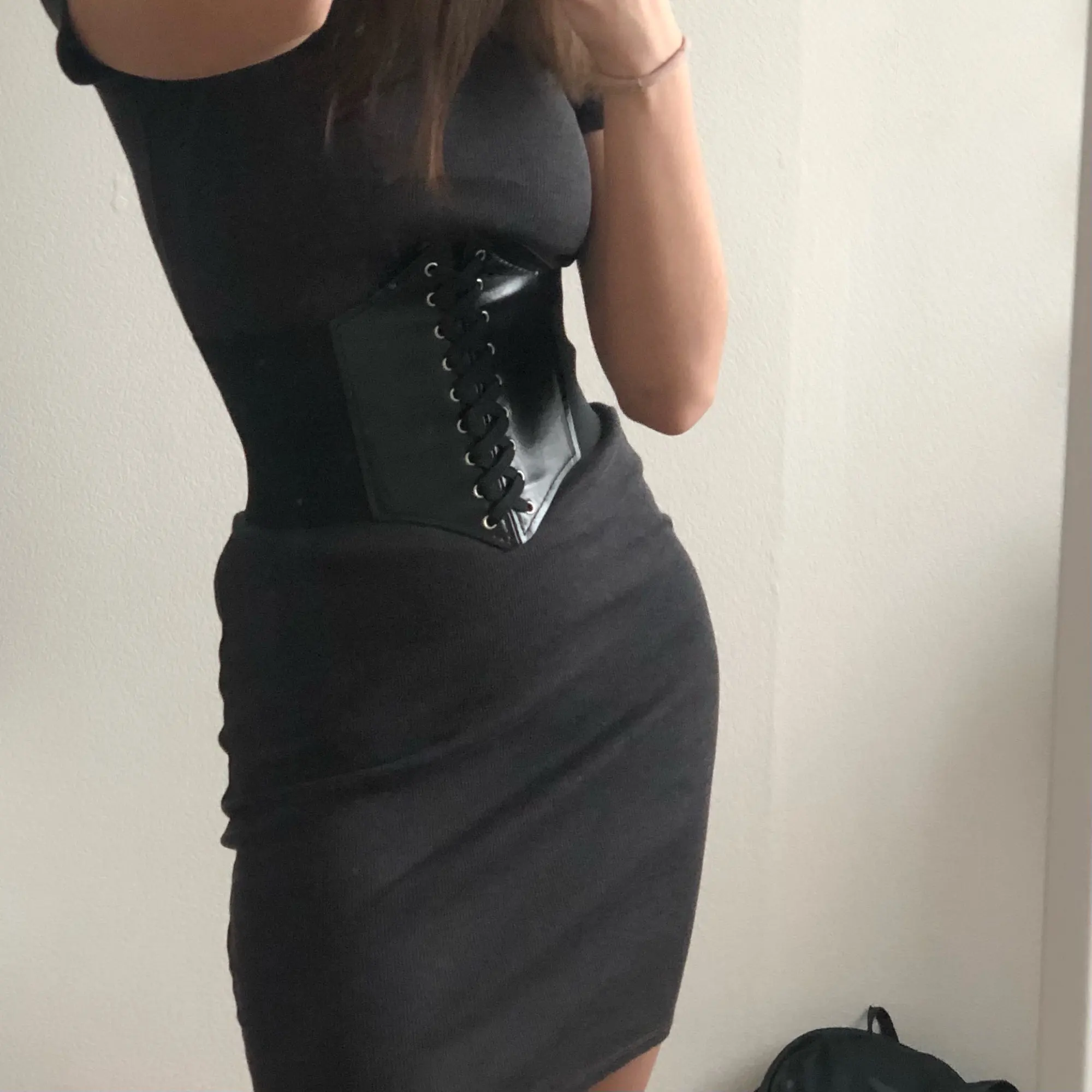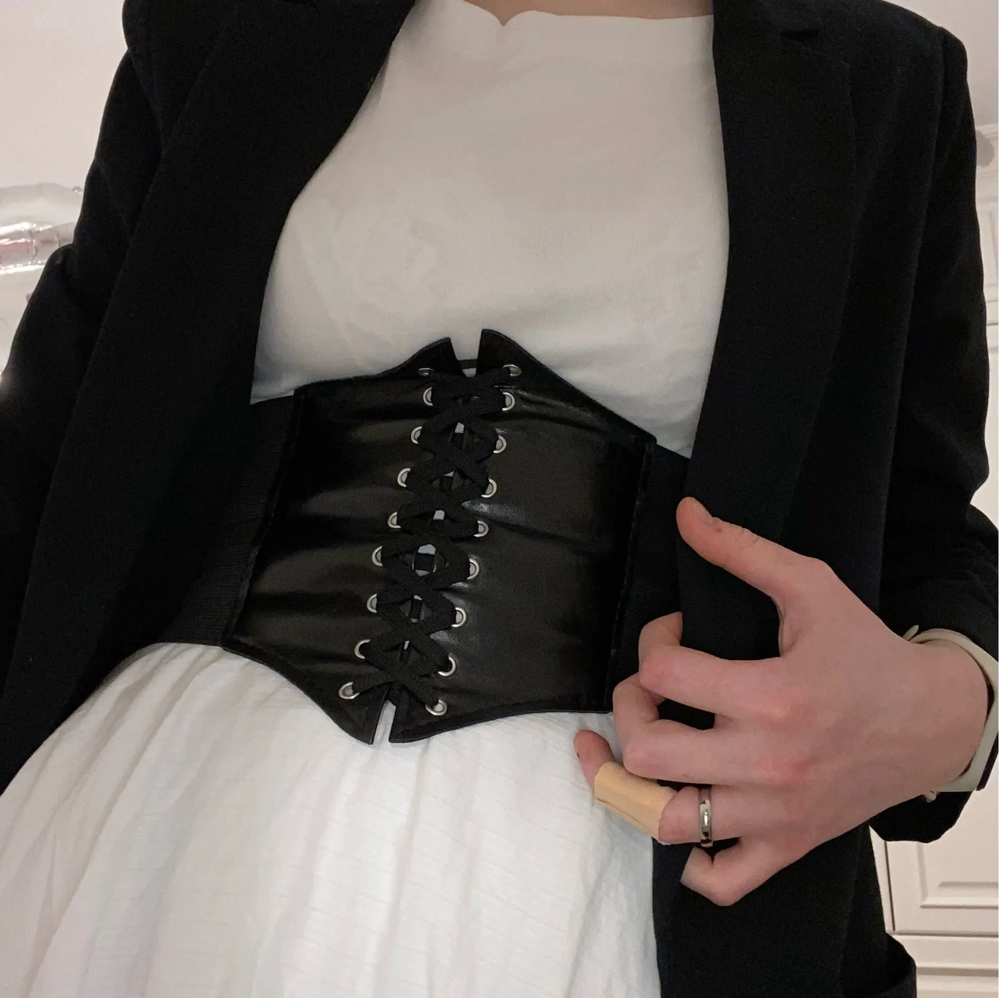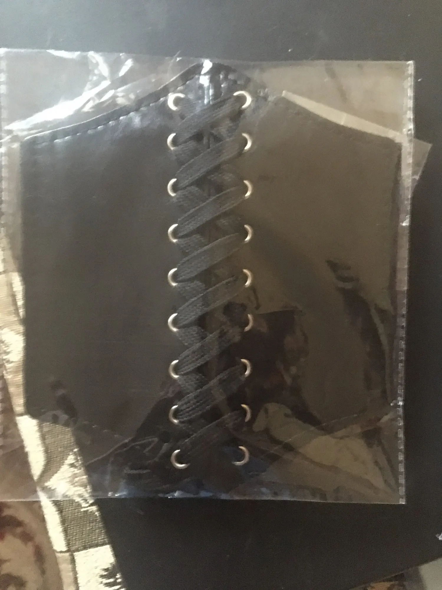 Очень модный корсет. Сшит хорошо. Спереди деталь на шнуровке из экокожи, потом широкая резинка, сзади на липучке.