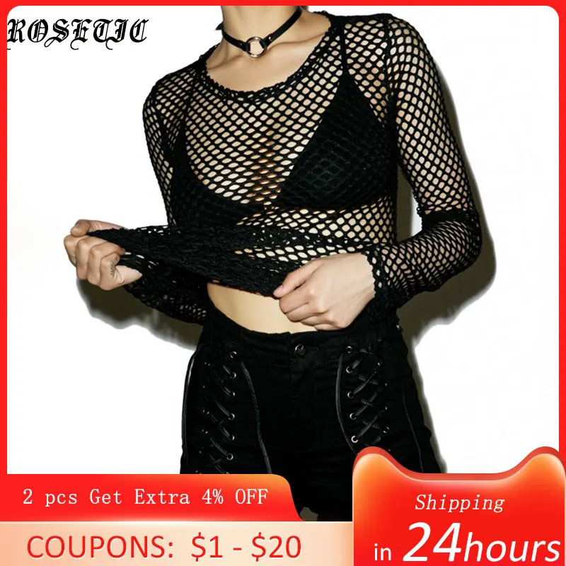 Rosetic сетчатая Готическая Толстовка с длинным рукавом, женские сексуальные прозрачные черные топы с капюшоном в стиле панк, уличная толстовка, топы на Хэллоуин 2020