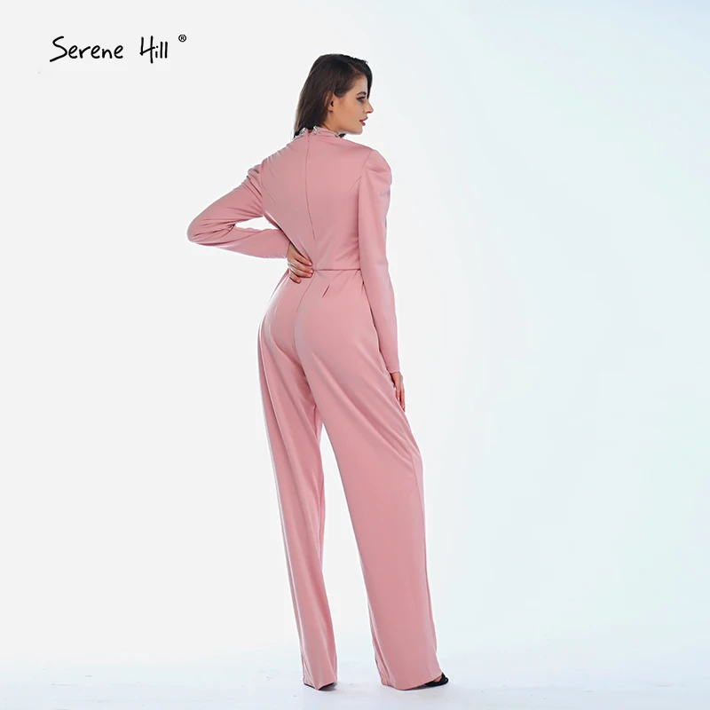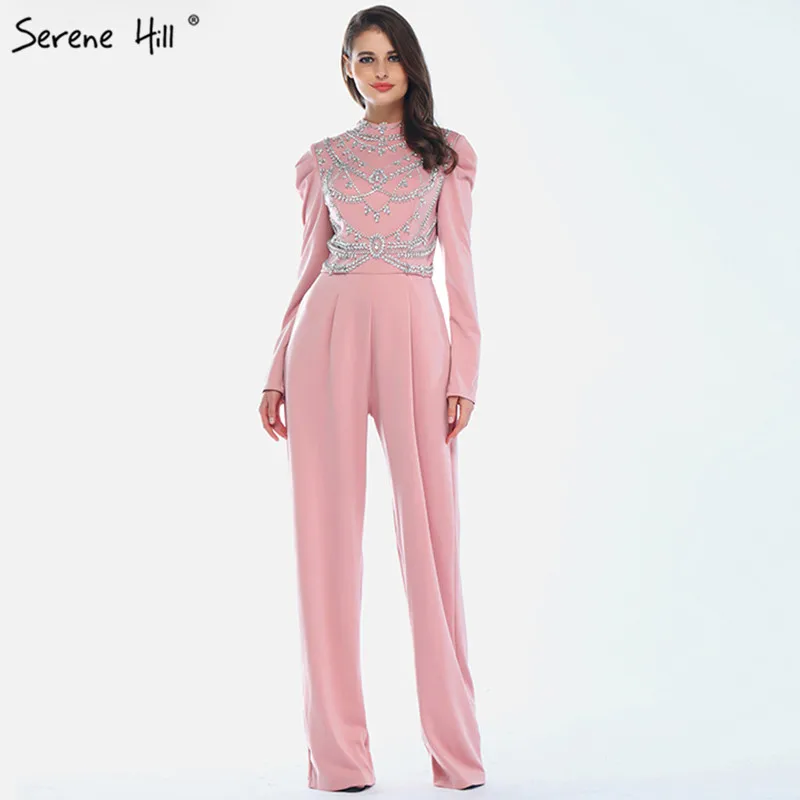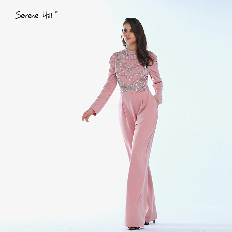 Мусульманские розовые вечерние платья с длинными рукавами с высоким воротником комбинезон с изображением алмазов торжественное платье Serene Hill LA60910