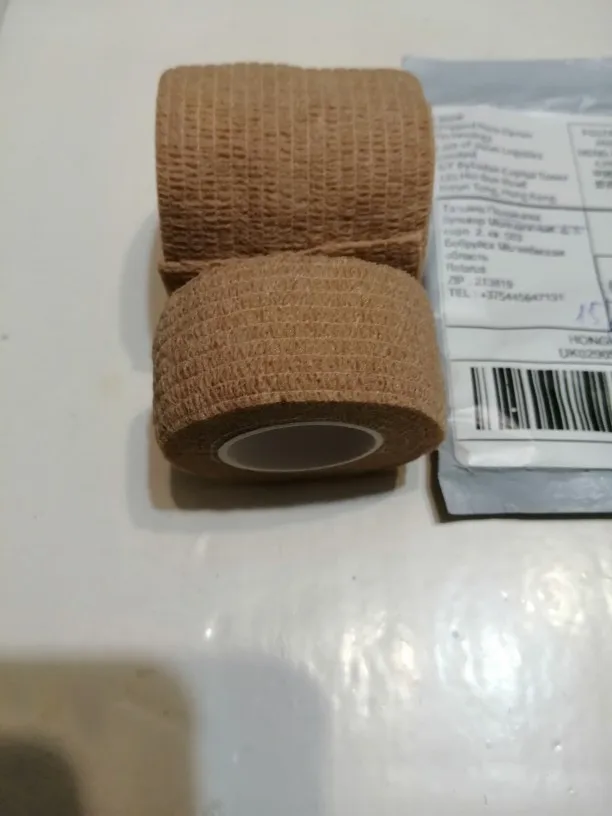 Самоклеющийся эластичный бинт заказываем третий раз. Качество на высоте. Всё соответствует стандартам. Товаром полностью довольны. Посылка шла около месяца. Благодарю продавца за подарок: ремешок для мобильника.