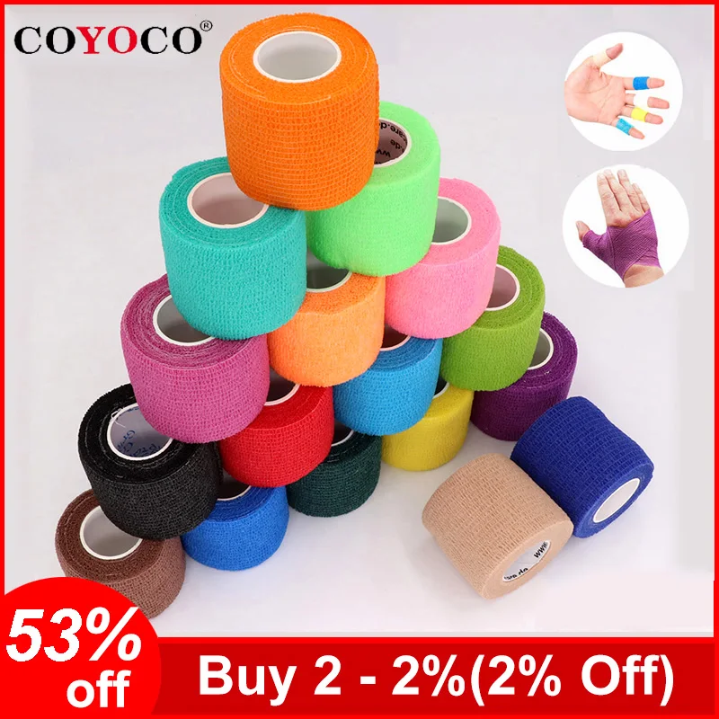 Цветная Спортивная самоклеящаяся эластичная бандажная лента COYOCO 4,8 м, эластопласт для наколенников, пальцев, лодыжки, ладони, плеч