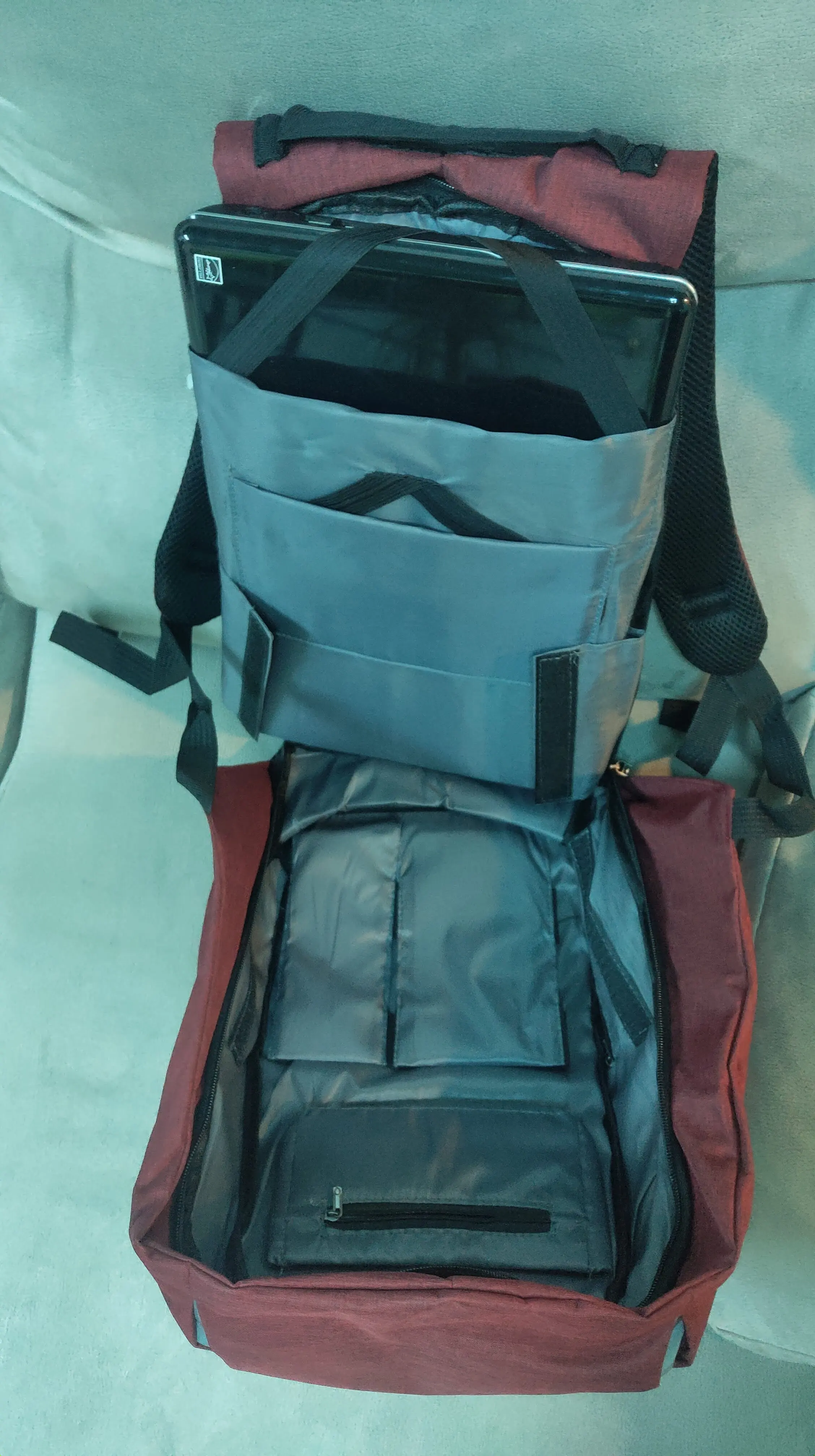 ожидал немного иного качества изделия, но увы, в целом со своей задачей справляется, но на месте производителя я бы доработал молнию замка главного отдела, на более мощный и удобный, чтобы при застёгивании молнии без дополнительных движений всё застёгивалось, а пока что нужно укладывать всё руками и после внимательно проводить собачку молнии, иначе углы ноутбука 15,6" не дают её застегнуть
