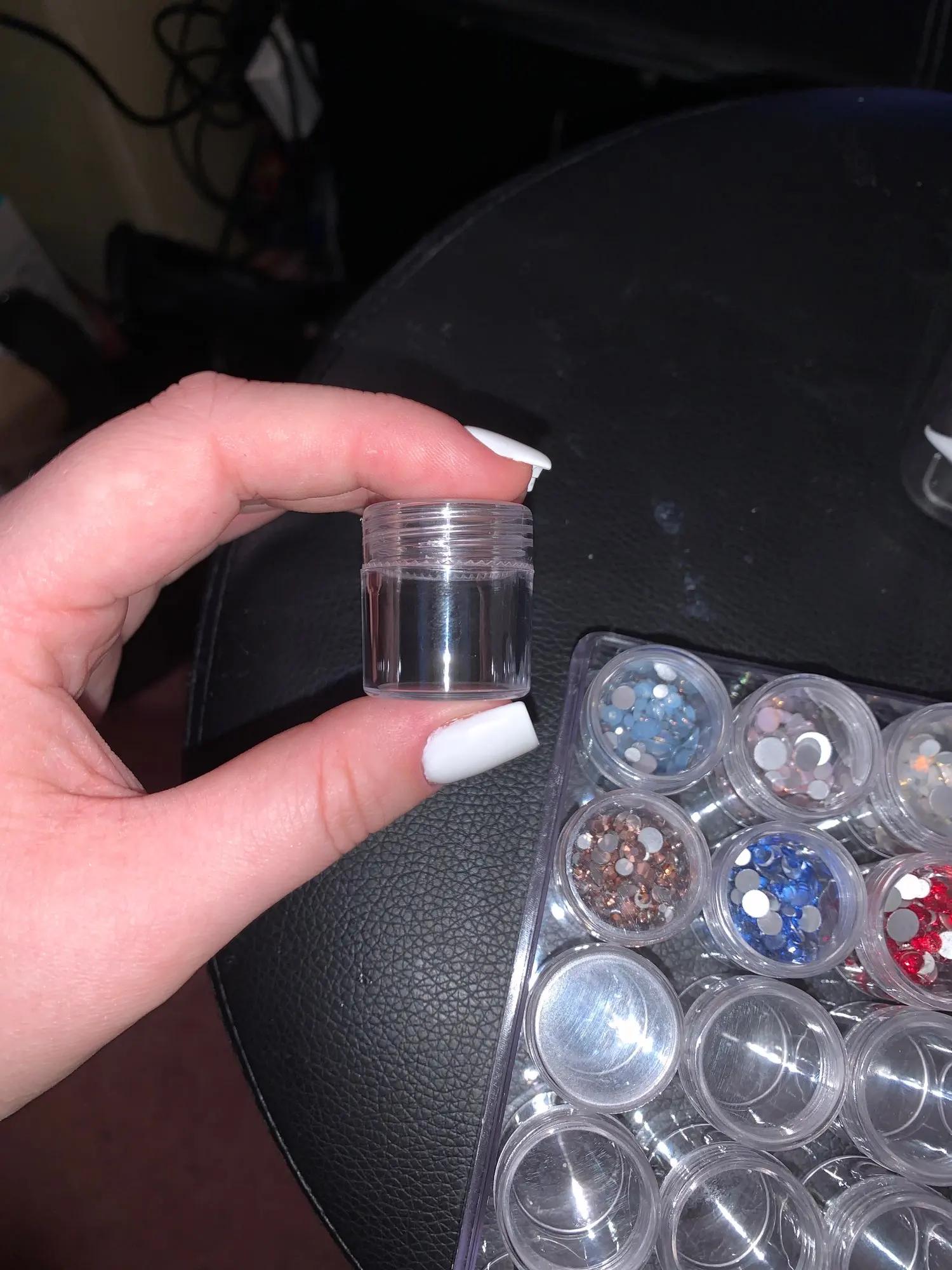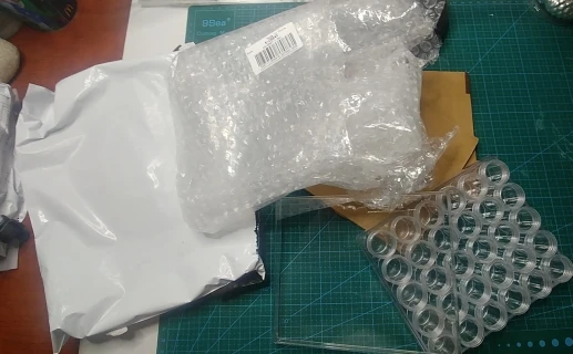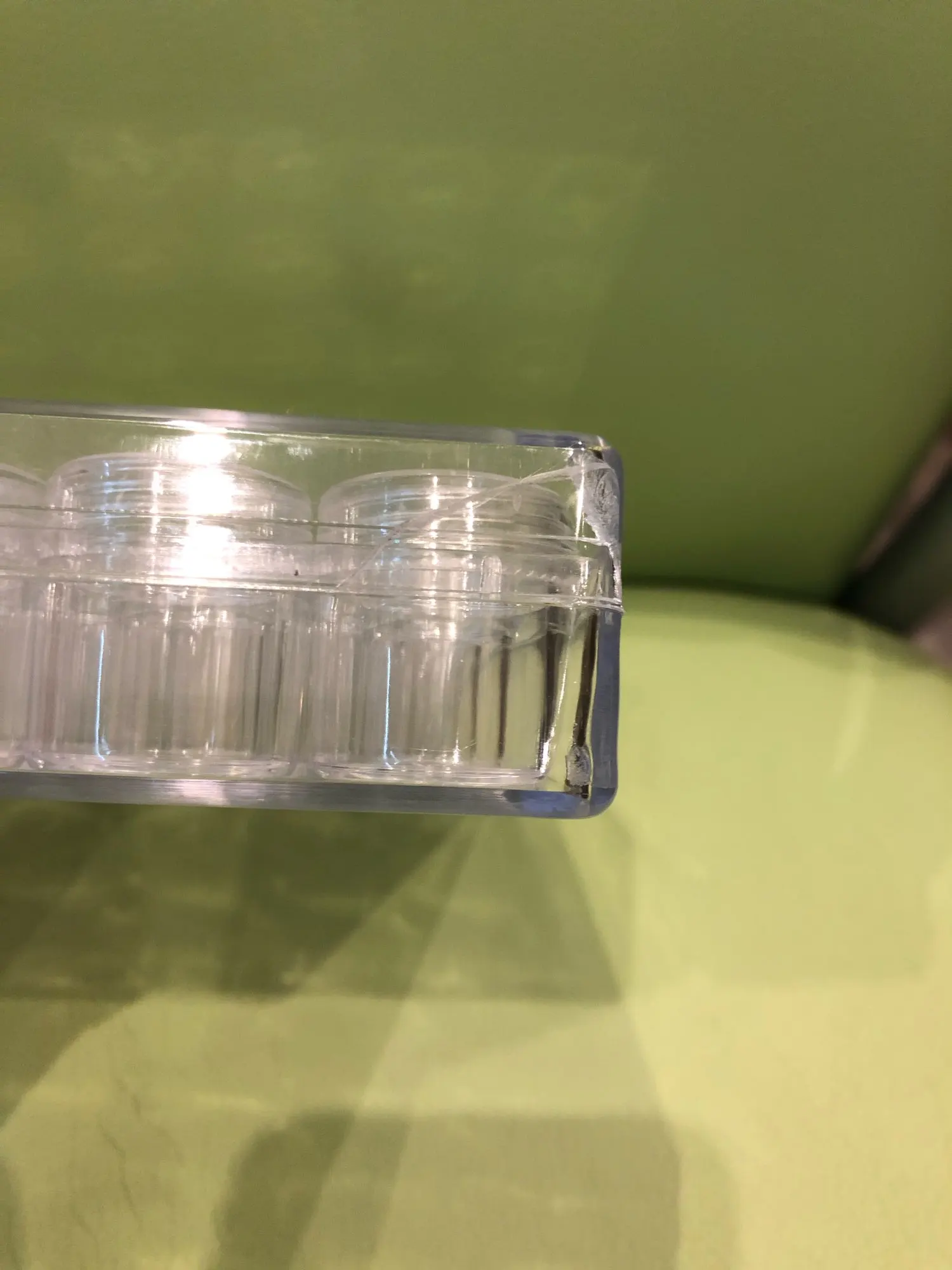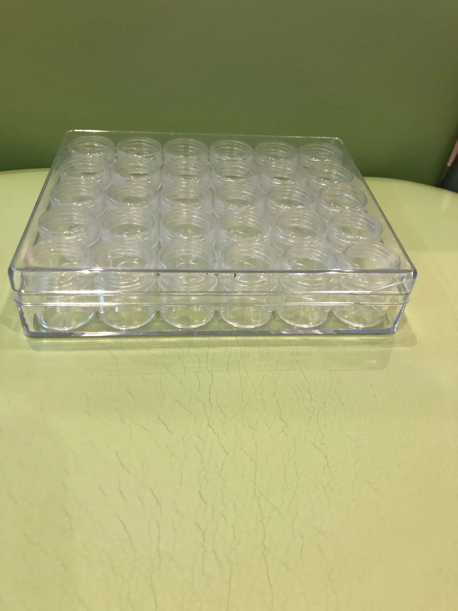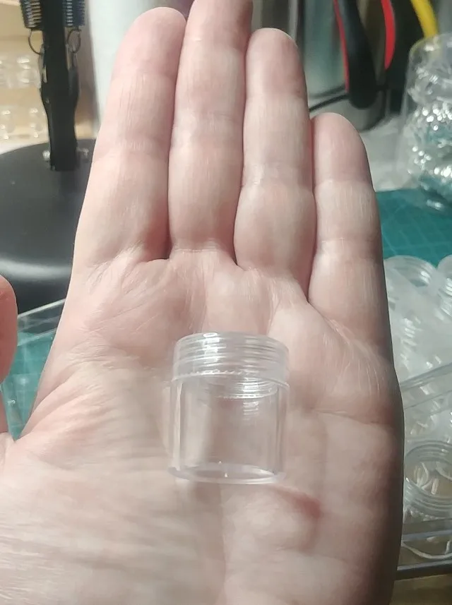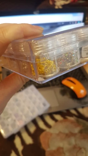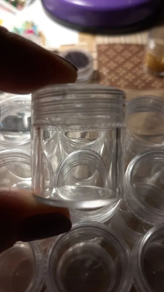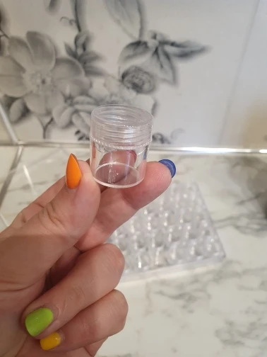 Заказ пришел очень быстро. Есть небольшая трещина на крышке, но это не критично. В баночку помешается 10 грамм бисера.