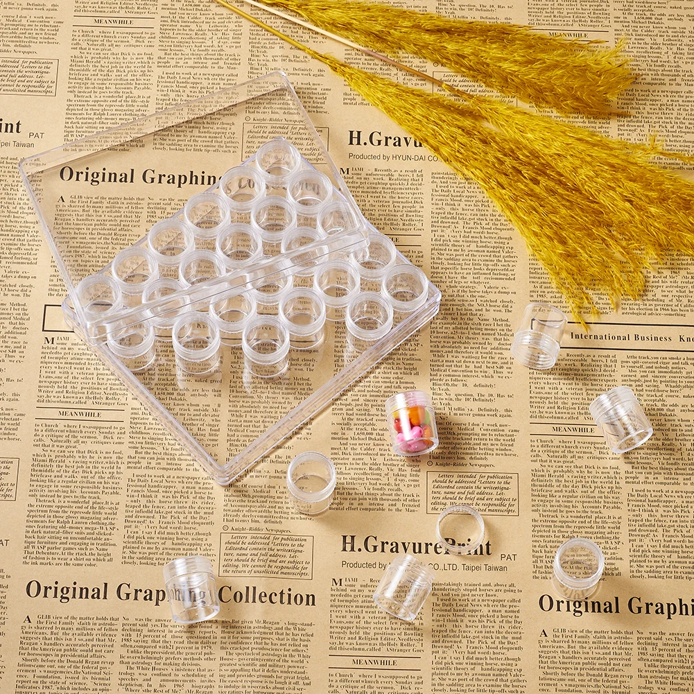 Контейнеры для хранения пластиковых бусин, 30 шт.коробка, маленькая банка для хранения ювелирных изделий, 13,5 см x 16 см x 3,5 см, бутылка: 26x29 мм