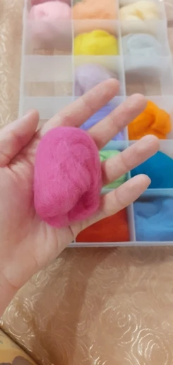 Довольно полный комплект, прибыл в течение предполагаемой даты, материалы хорошего качества и со всем необходимым, чтобы начать на иглу felting. Коробка была немного поцарапана, и сумка, в которой пришла шерсть, была немного сломана, но, вероятно, это было из-за поездки. Протекторы для пальцев сделаны из кожи, есть разнообразие игл, а цвета шерсти яркие. Я рекомендую продукт.
