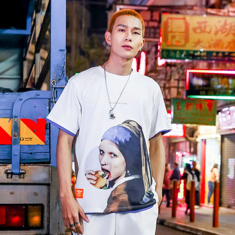 Футболка мужская с жемчужными серьгами, смешная тенниска в стиле хип-хоп, уличная одежда, хлопковые голландские Топы с коротким рукавом, лето 2021