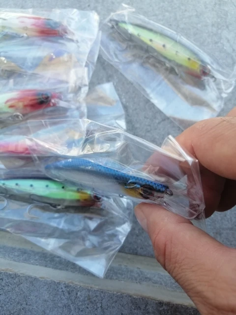отправил быстро, но пришло в срок, визуально выглядят хорошо, запакованно отлично и пришло всё целое. на одной приманке краска потекла на производстве. крючки так себе .