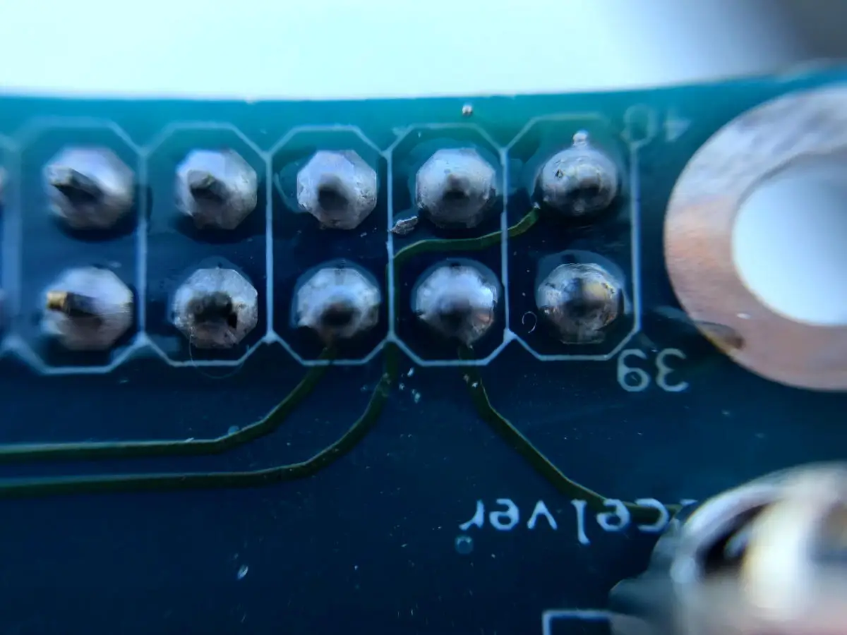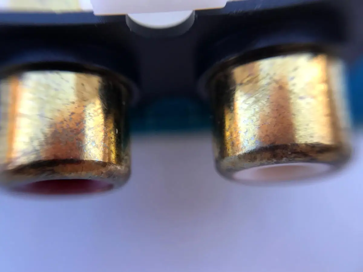Поверхность PWB и компоненты на нем липкие с остатком припоя, и разъемы RCA корродированы, вероятно, из-за грязи на них. Мне нужно очистить модуль с IPA (после удаления электролитических конденсаторов), и я никогда не буду использовать разъемы RCA.
