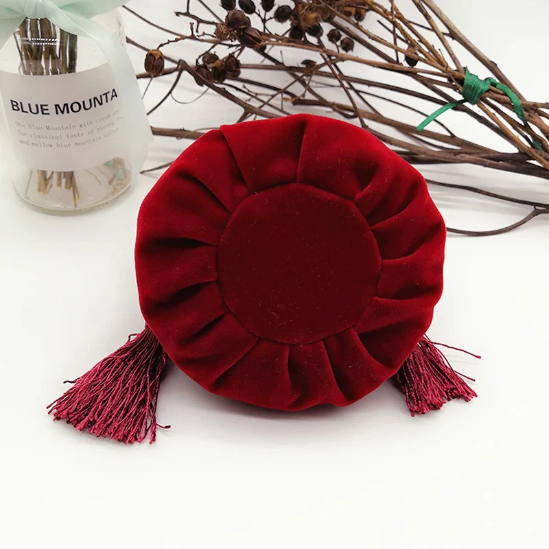 Розово-белые круглые сумочки с кисточкой и металлическими бархатными свадебными сумочками 12x17 см, подарочные сумочки для ювелирных изделий, винного цвета, упаковка с завязкой