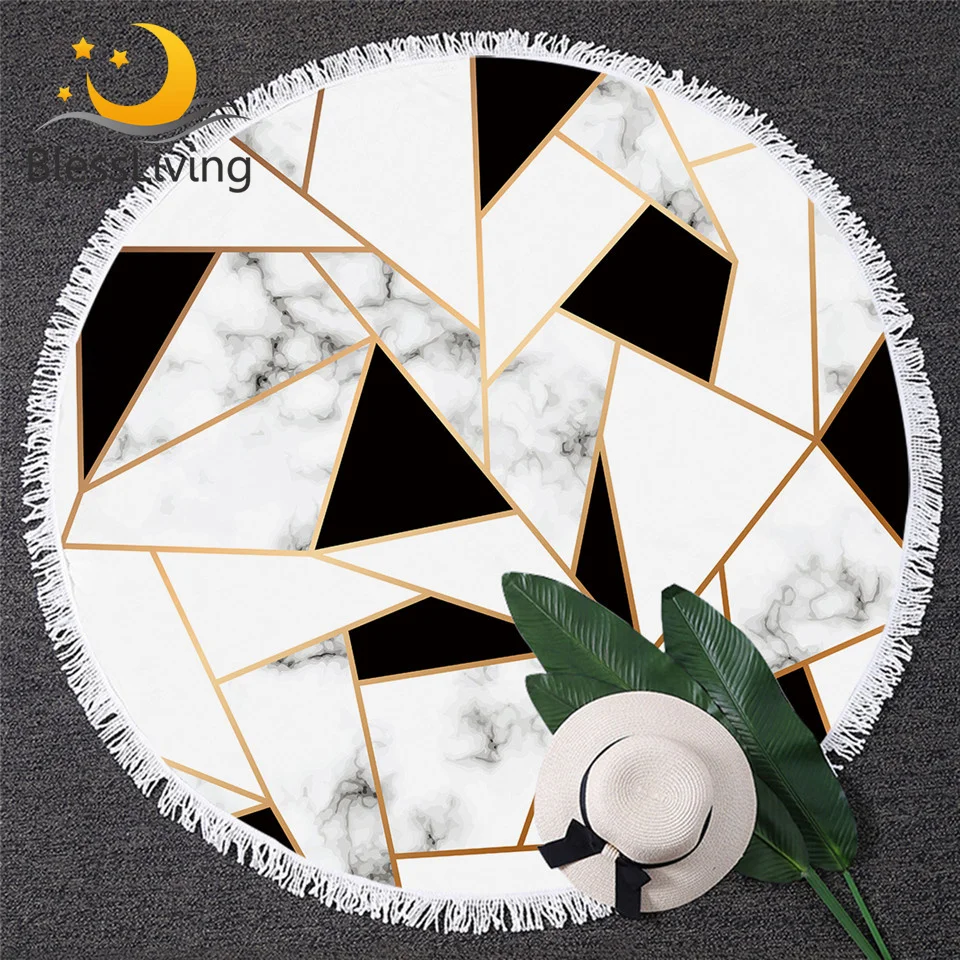 Круглое пляжное полотенце blesslife с геометрическим принтом, черно-белое большое полотенце для взрослых с мраморной текстурой, стильный Коврик для йоги с кисточками