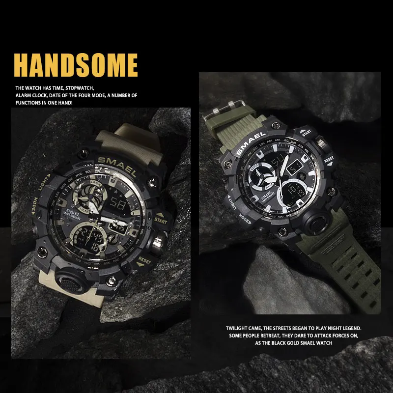 Мужские электронные часы с хронографом SMAEL, спортивные армейские часы в стиле G, светодиодные электронные наручные часы для мужчин