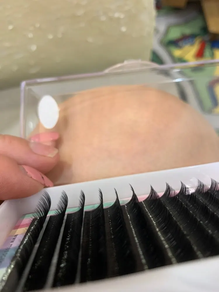 Ресницы - бомба! Взяла микс на пробу, буду заказывать теперь отельные длины! Реснички ооочень мягкие, тонкие сбоку и широкие в фас. 0,20 толщина как мне кажется соответсвует 0,10 толщине обычных ресниц. Изгиб С соответсвует изгибу С+. Наращивание именно этой толщиной получается очень похоже на мокрый эффект, только более воздушнее, чтоли)) Ещё они как будто примагничиваются к натуральной ресничке, клеятся сами!))) в общем я очень довольна, планирую в классике перейти на них, жаль, что нет 7й длины хотябы... попробую подрезать 8ку) Прилагаю свою работу этими ресницами))