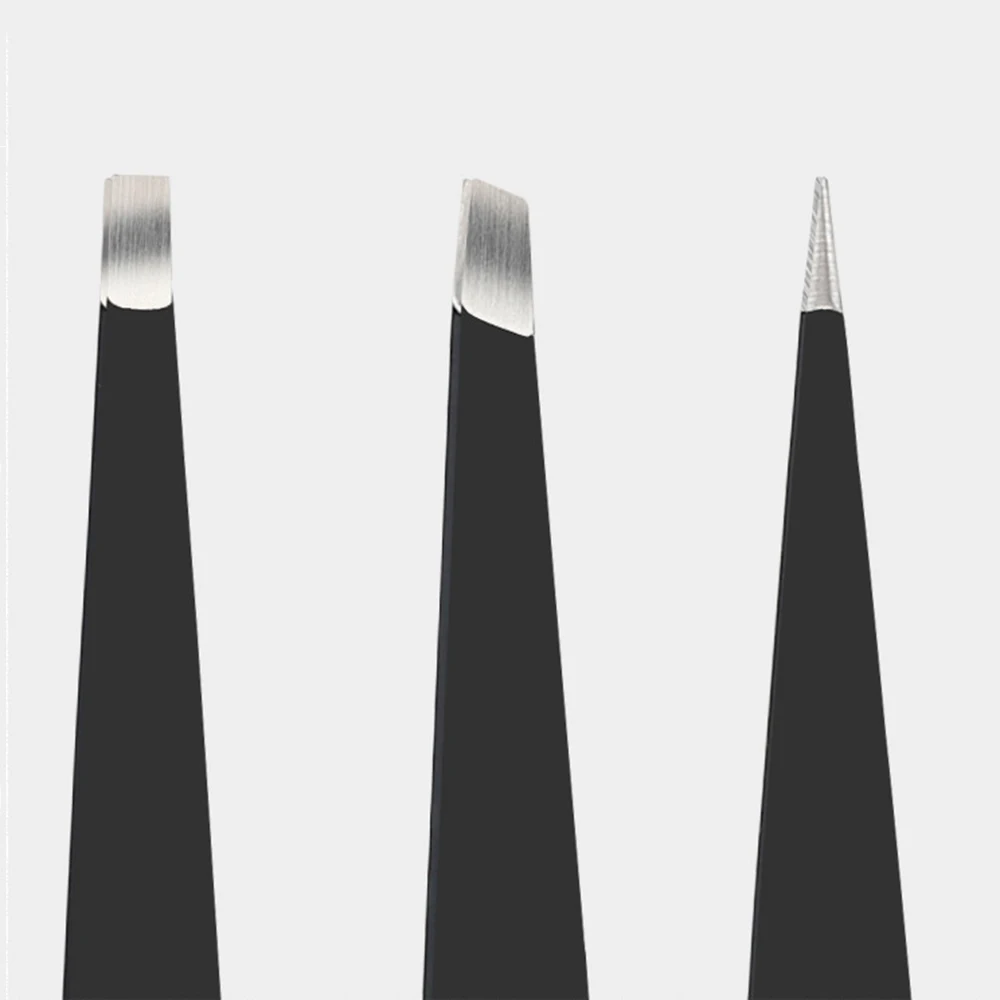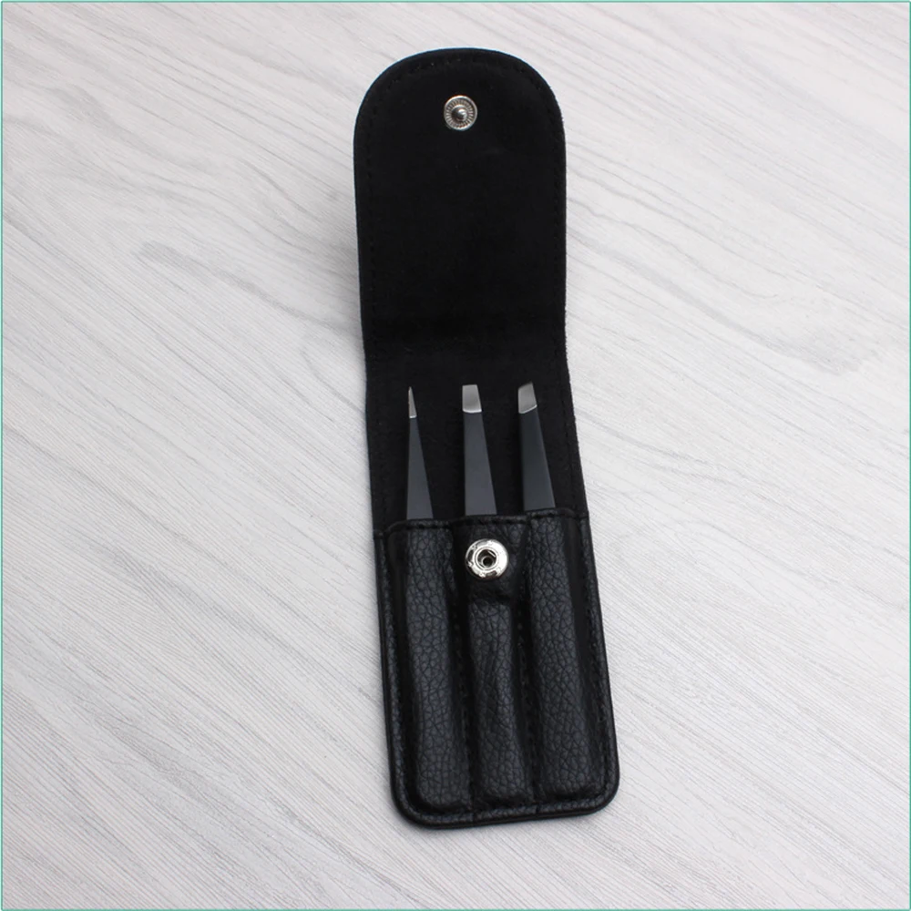 Пинцет для бровей, 3 шт.компл., профессиональный, из нержавеющей стали, с косым кончиком, с плоским кончиком, снятие макияжа, набор инструментов с сумкой