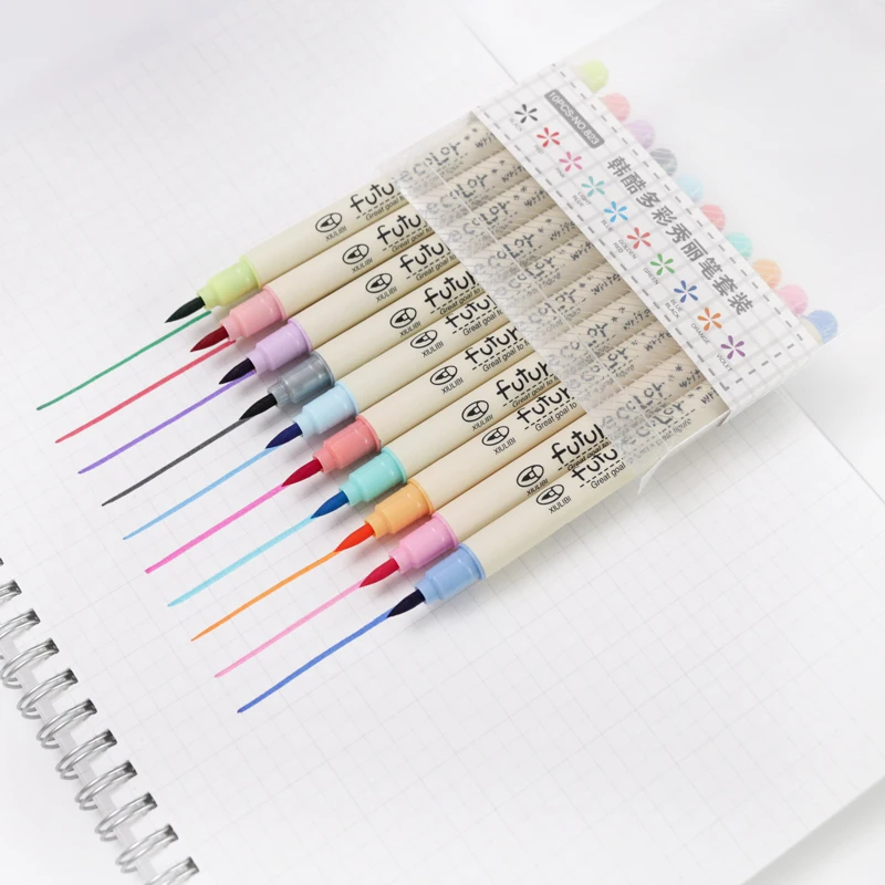 Набор маркеров для каллиграфии, 10 цветов, для детей, для школы, рисования, рисования, мягкая кисть, ручки, канцтовары, подарок, школьные принадлежности F805