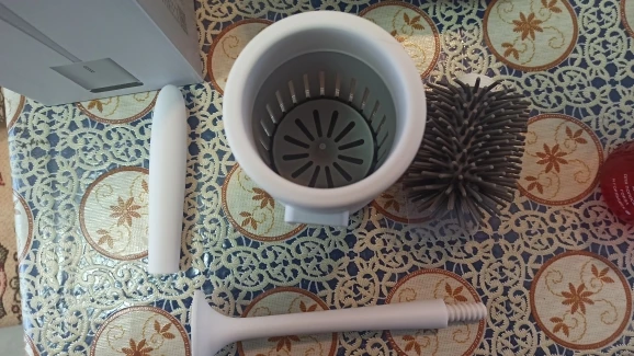 Описание соответствует, ёршик жесткий, ручка и стакан хорошего качества, надеюсь, послужит долго. Стаканчик состоит из двух частей. Рекомендую