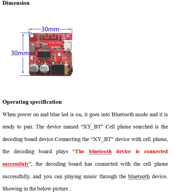 Модуль отличный, соединение по bluetooth очень быстрое. Взял для использования с парой 3ватных динамиков, для них он слабоват, нужен усилитель. Из недостатков, при подключении к телефону, не показывает заряд батареи.