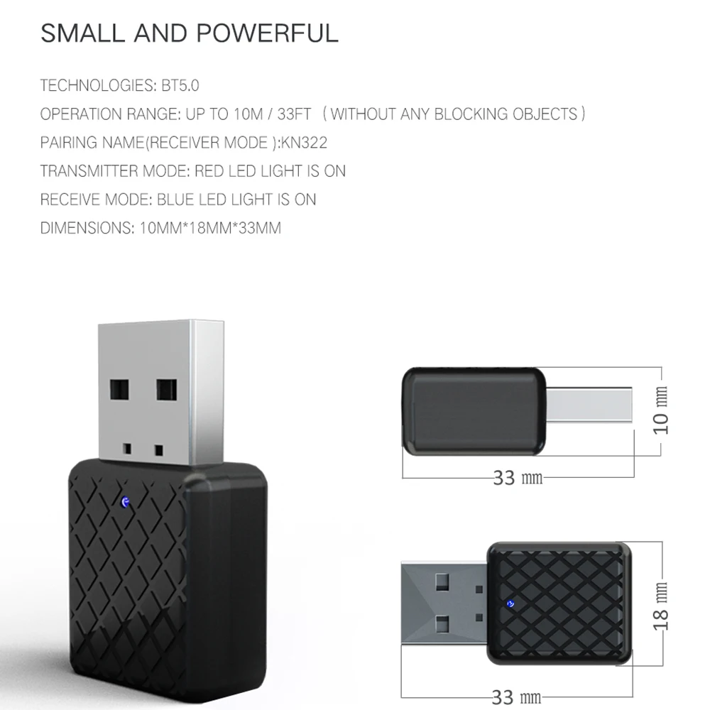 1x Bluetooth 5,0 аудио передатчик/приемник адаптер