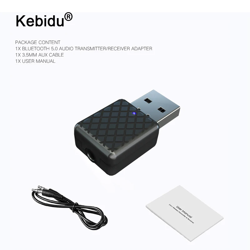 Приемник-передатчик kebidu Bluetooth 5,0 2 в 1, настоящий стерео Bluetooth беспроводной адаптер, аудио с 3,5 мм AUX для домашнего ТВ, MP3, ПК