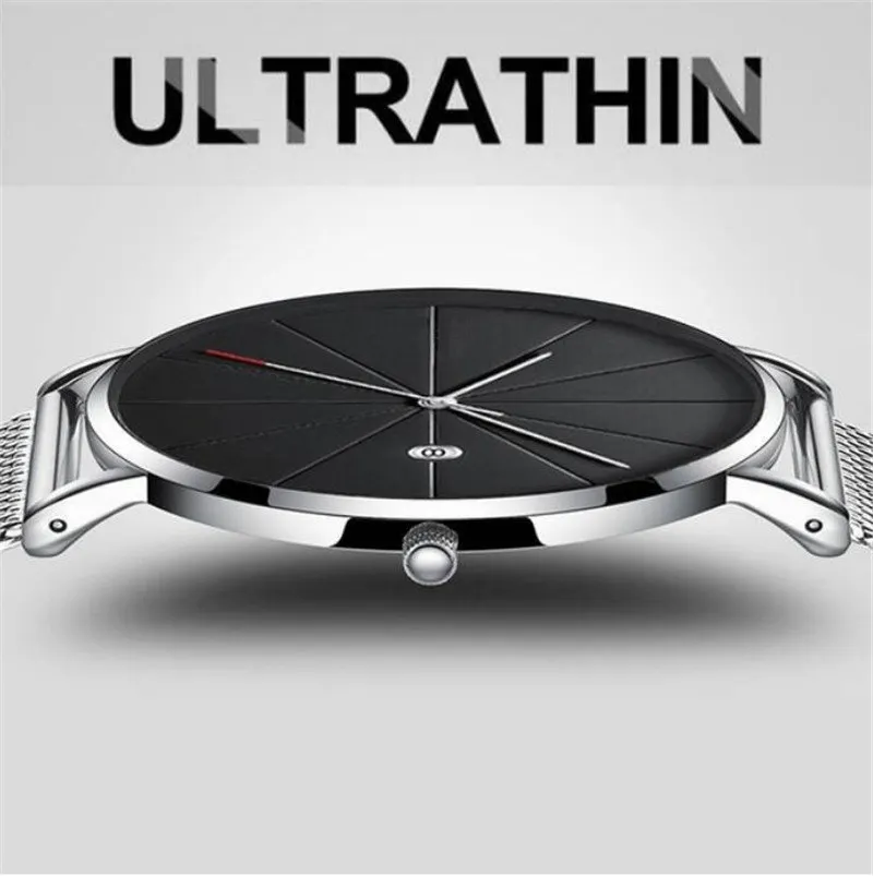 Простые мужские часы с сетчатым браслетом из нержавеющей стали, деловые классические кварцевые наручные часы с датой, повседневные Роскошные мужские часы