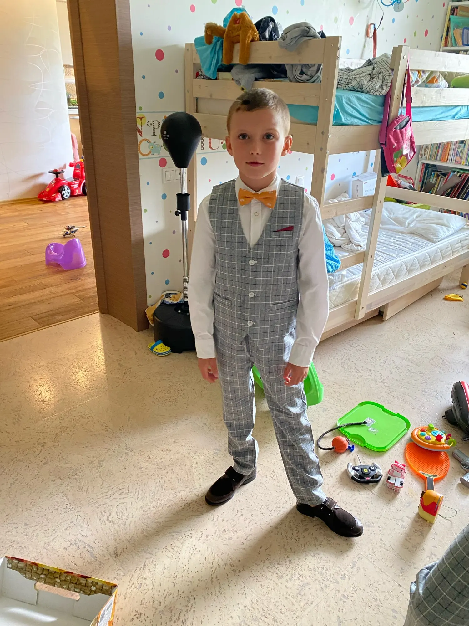 Очень хорошая ткань, мягкая, но нам большеват но ничего на следующий год носить будем